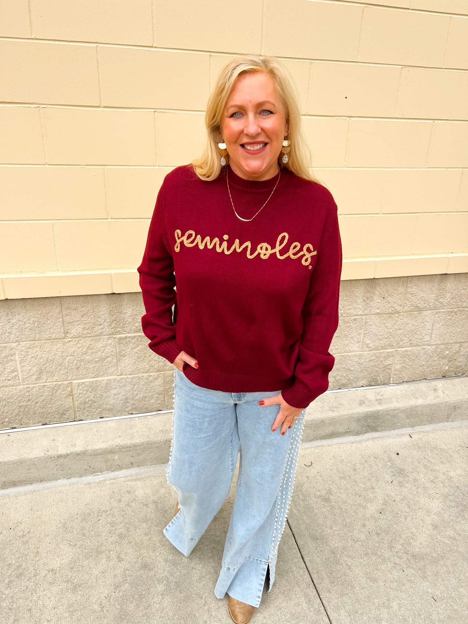 Soft, spirited, and stylish—it’s the sweater every Seminoles fan will want in her fall lineup.