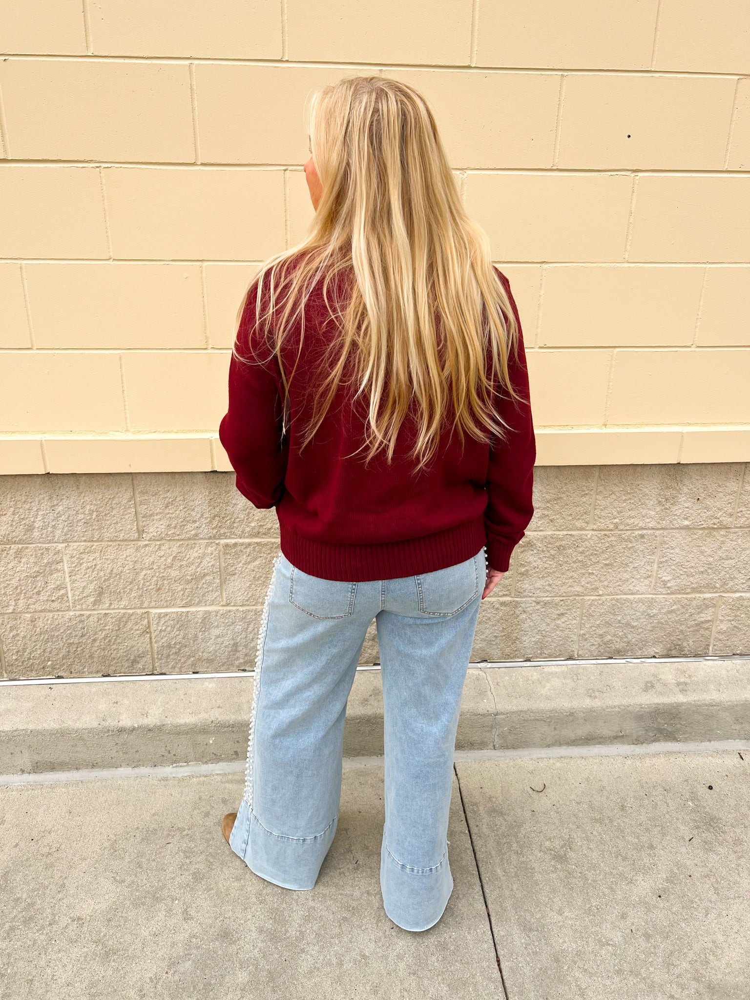 Ready to cheer on the Noles in effortless style? This lightweight garnet sweater was made for spirited Saturdays and cozy campus strolls. Crafted from a soft, breathable knit, it’s comfortable enough for all-day wear while keeping your look polished and pretty.