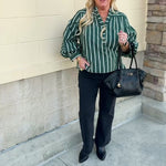 Harvest Charm Split Neck Stripe Top in Green