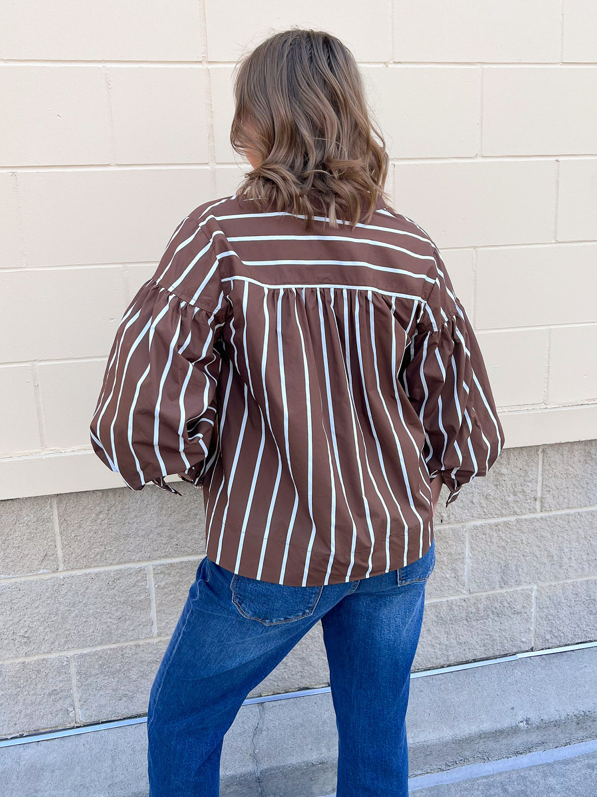 Looking for the perfect top to carry you through fall in style? The Harvest Charm Split Neck Stripe Top combines cozy textures and elevated details for an effortlessly put-together look. The warm brown and white stripes bring a timeless touch, while the soft, airy fabric makes it an easy favorite for layering under jackets or cardigans. The split neckline adds a hint of sophistication, and the puffed sleeves with cuffed wrists create a romantic silhouette that feels both classic and fresh. Whether you’re dressing for a crisp day at the pumpkin patch or a relaxed office setting, this top brings instant autumn charm.