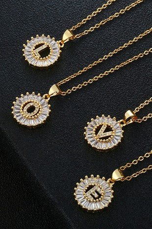 These gorgeous Sun Dial Initial Pendants are a favorite here at the shop! The gorgeous detail of the stones around your initial are a must have. This necklace also is great for layering!