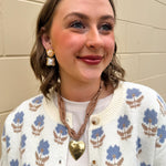 Pair with a cream sweater or an ivory blouse to let the hammered gold heart shimmer against soft, neutral tones.