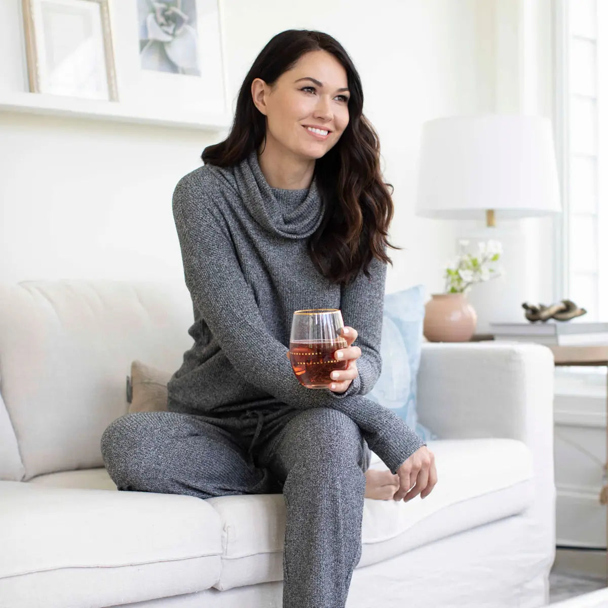 Indulge in ultimate comfort with our Hello Mello Cuddleblend Cowl Neck Top in Black. The buttery soft CuddleBlend™ fabric and cozy cowl neck design provide a luxurious feel, while the snuggle-ready thumbholes and relaxed fit add extra coziness. Comes in a matching drawstring pouch, making it a perfect gift!