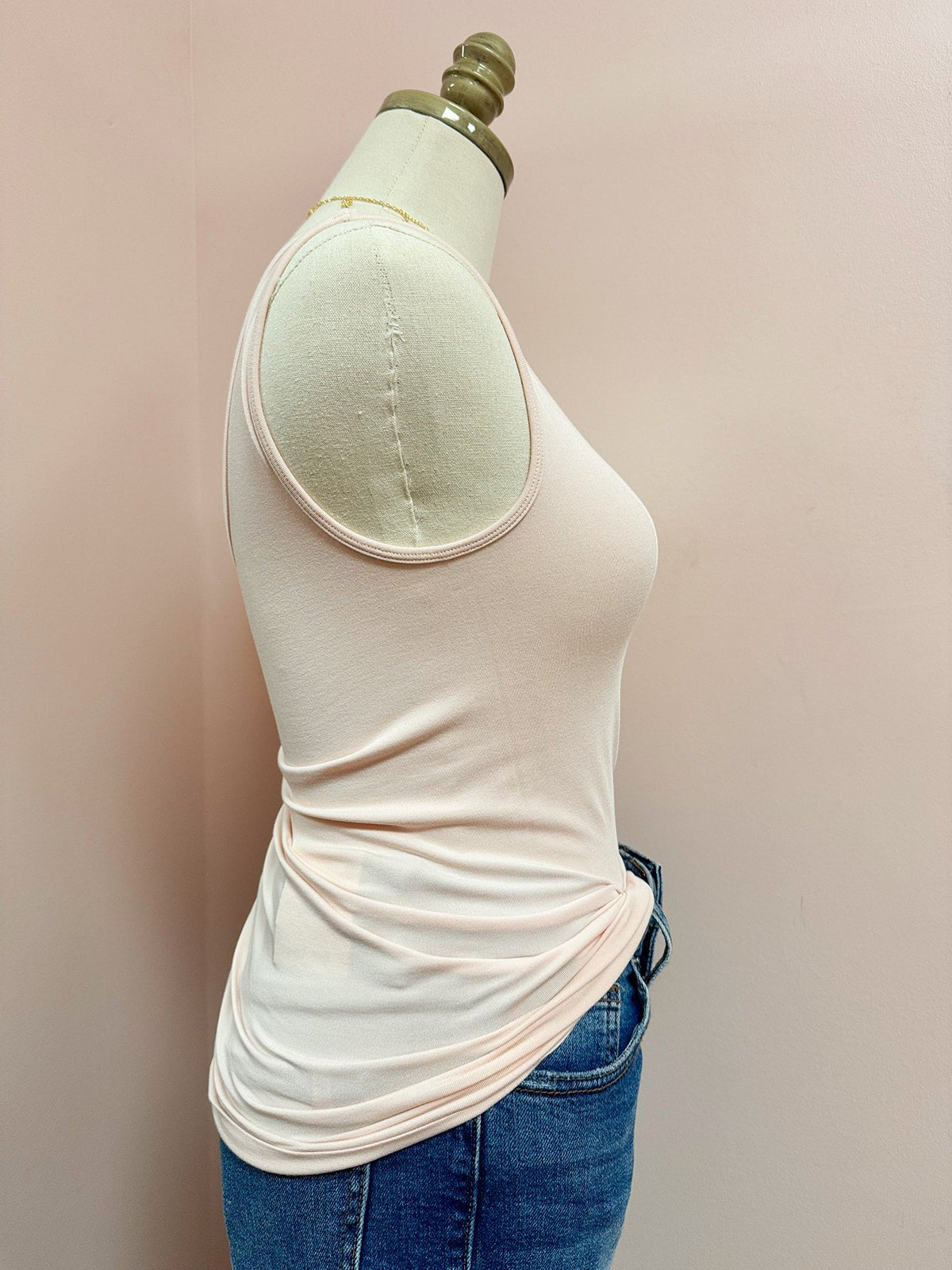 Introducing our Hidden Gem Reversible Tank in Blush - the ideal solution for those seeking versatility without compromising on comfort. Crafted with luxuriously soft, stretchy fabric that gently caresses your skin, this tank is the ultimate base layer for any outfit. Plus, with the option to switch between a chic V-neck and a classic scoop neck, you'll always be ahead of the game.