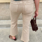 Meet your new favorite fall denim. The Mocha Wash High Waisted Jeans are the perfect mix of timeless structure and modern comfort. Designed in a warm ash mocha hue — a light brown-toned tan that flatters every skin tone — these jeans deliver a soft, neutral base for endless outfit possibilities. The high-rise fit smooths and flatters your silhouette, while the bootcut leg adds just the right touch of retro charm. With gentle stretch and a raw hem finish, they’re made for both style and all-day wearability.