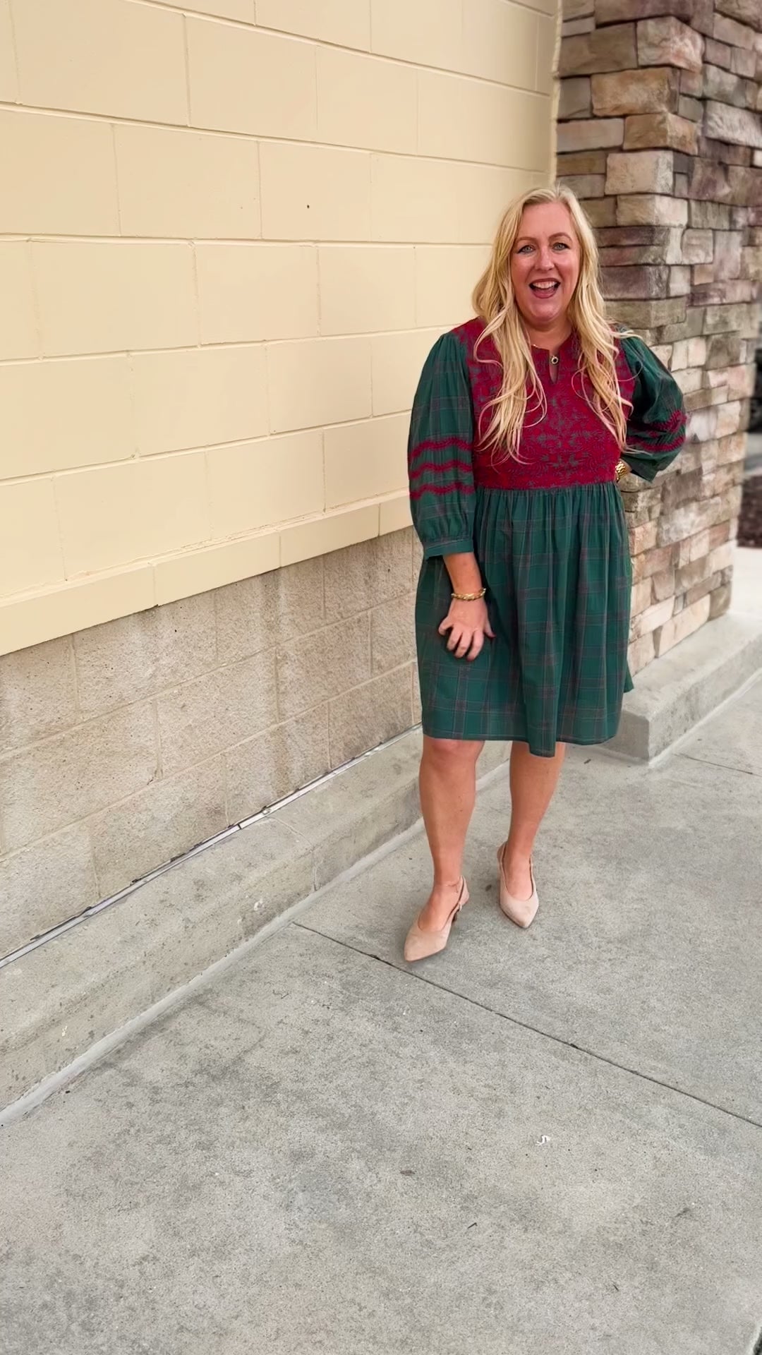 Need a festive dress that feels classic, cozy, and effortlessly pretty for every holiday moment? This green plaid mini dress blends charm and tradition with just the right touch of seasonal magic. The red embroidered bib detail adds a handcrafted feel that makes the whole look pop, while the soft plaid pattern keeps it timeless and easy to style year after year. A flattering V-neckline and 3/4 sleeves create a feminine silhouette that works for photos, parties, and everything in between. Lightweight yet cozy, this dress brings together comfort and elegance in the most Christmassy way—ideal for gatherings, school events, or festive nights out. It’s the kind of piece that makes you feel instantly put together with zero effort.
