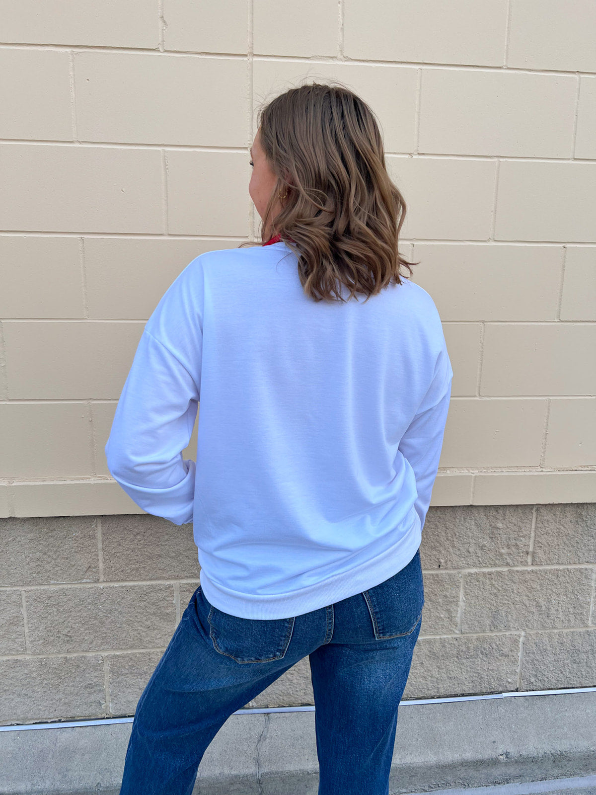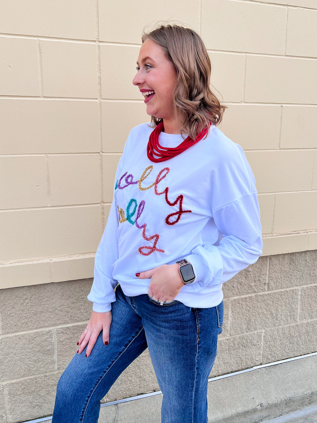 Holly Jolly Tinsel Crewneck Sweatshirt in White