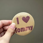 Garnet and gold design with playful “I ♥ Tommy” lettering