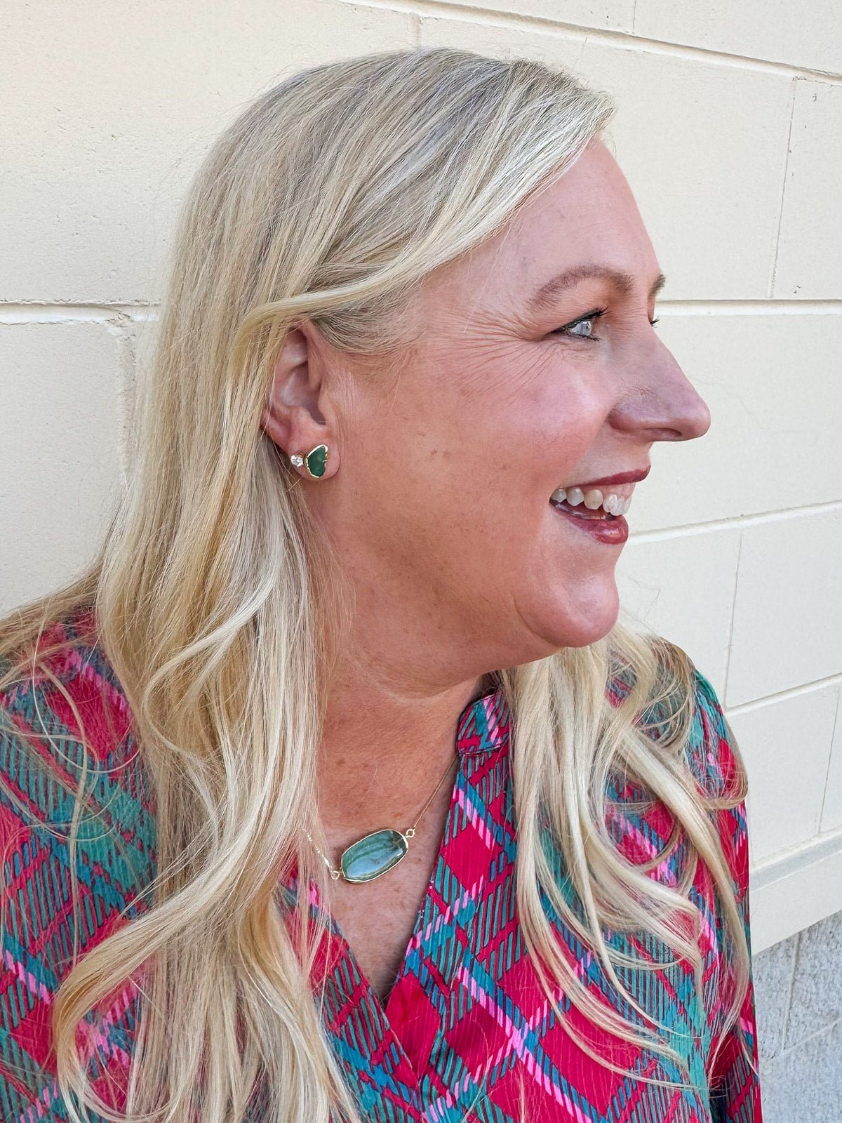 Unique, artful, and effortlessly elegant — the [Easton Elle] Irregular Green Slip Necklace captures the essence of handcrafted luxury. Designed by a woman-owned jewelry brand, this necklace features an irregular semi-precious green stone suspended from a sleek, adjustable toggle slip closure. The rich green hue evokes the beauty of fall foliage and the sophistication of the holiday season, making it the perfect statement of understated charm.