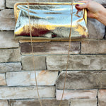 The Gold Isabella Clutch is where timeless elegance meets modern charm. Crafted from soft vegan leather with a luminous gold finish, this stunning clutch adds instant sophistication to any outfit. Its sleek silhouette and classic clasp closure make it the perfect blend of style and practicality, while the spacious interior keeps your essentials—phone, lipstick, and more—beautifully organized.