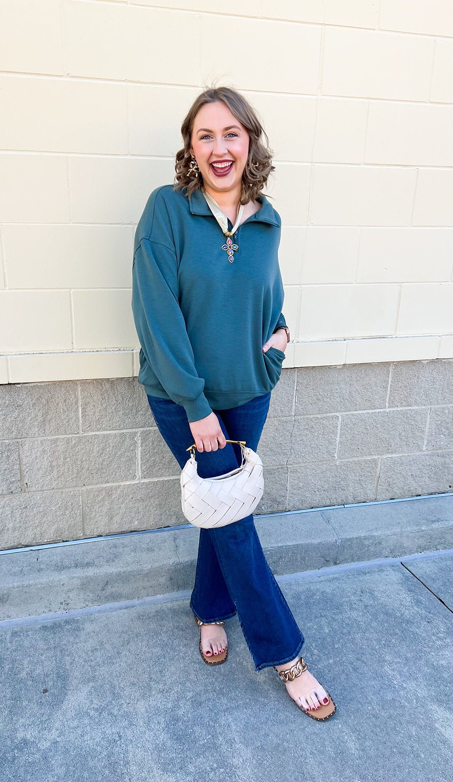 For cozy days that still call for a little polish, meet the Jade Canyon Half-Zip. This jade green pullover strikes the perfect balance between relaxed and refined, with a soft feel you'll want to live in and a half-zip neckline that adds just the right touch of structure. Whether you’re layering it over activewear for a casual coffee run or pairing it with denim for everyday errands, this sweatshirt makes effortless style a breeze. The fresh, earthy hue brings a natural calm to your wardrobe—perfect for transitional weather and laid-back weekends alike.