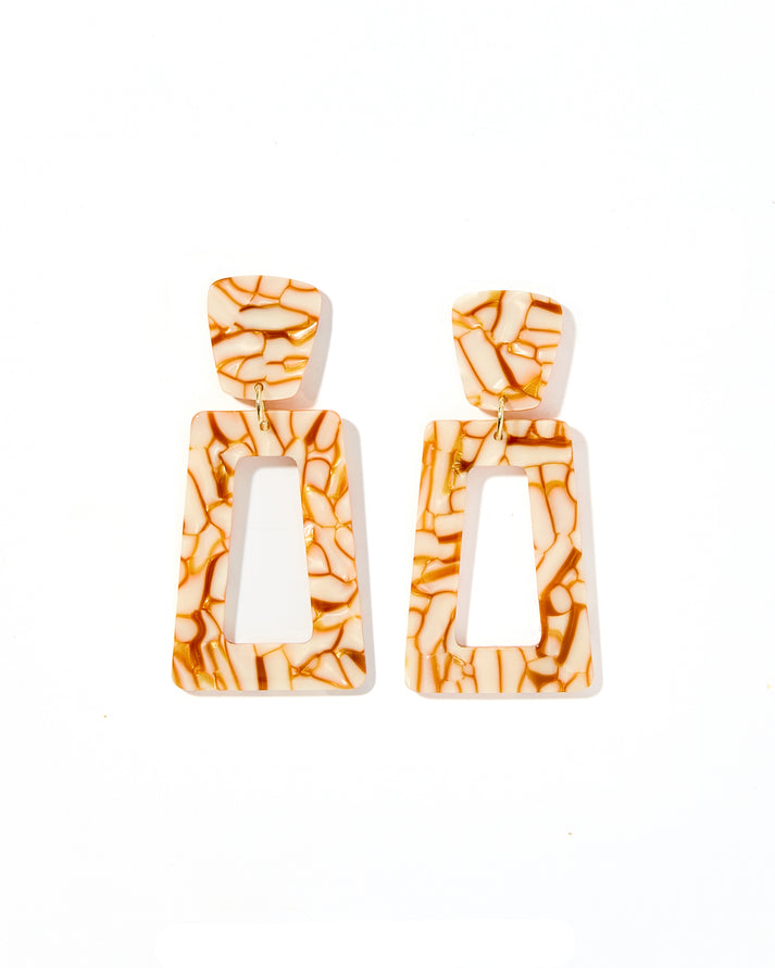 The Kennedy earring from LINNY CO is a must-have for any wardrobe, with its quirky 70mm length and unique desert sand color scheme. Made from eco-friendly materials like surgical-grade stainless steel and acetate, it's both lightweight and safe for sensitive ears. Plus, it's always copper and nickel free!