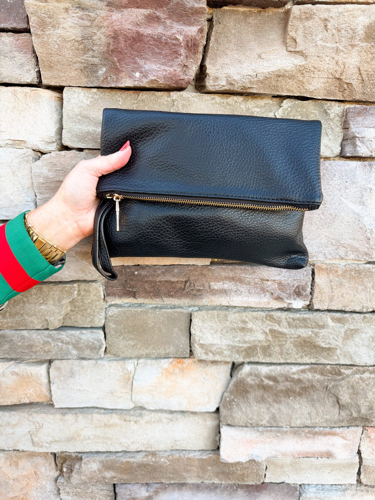 Luna Fold Crossbody Purse in Black with Gold Hardware