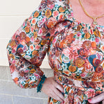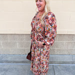 Looking for the perfect Thanksgiving dress that’s as comfortable as it is beautiful? The Marigold Haven Floral Midi Dress captures the essence of fall with its deep autumn floral pattern and effortless silhouette. Designed with long sleeves and elastic cuffs, this dress combines a flattering elastic waistline with a softly flowing skirt that moves gracefully with every step.