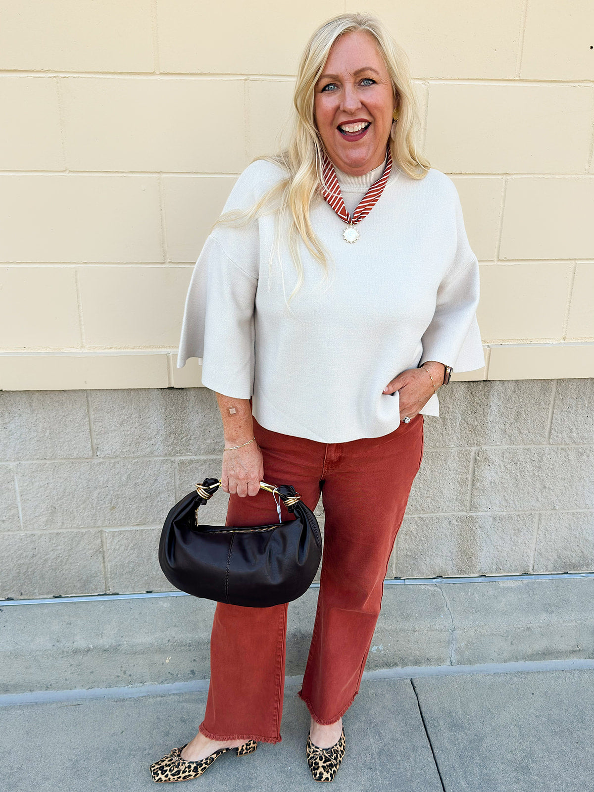Styling Tip: Pair with cropped denim and a flowy blouse to let the bow detail shine.