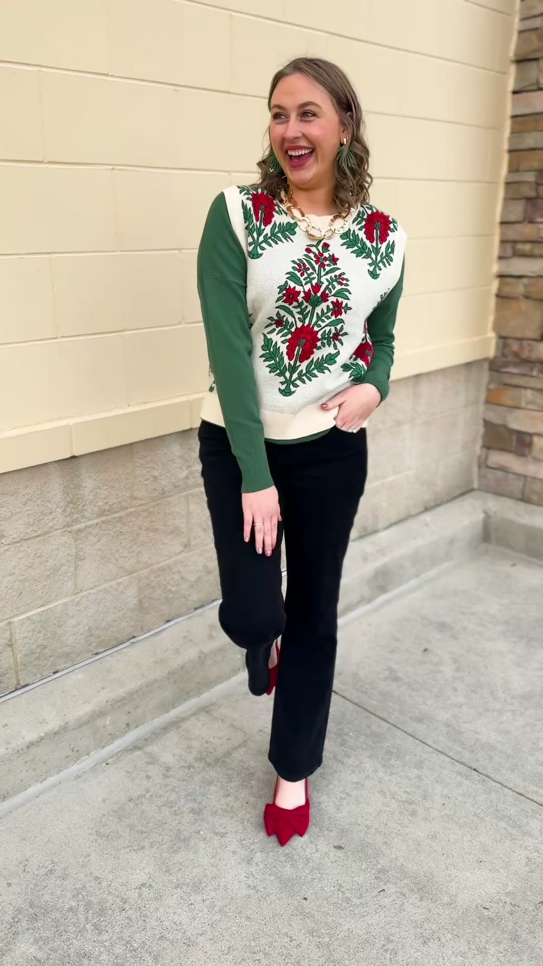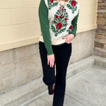 Looking for the perfect layering piece to bring subtle holiday charm to any outfit? The Merry Meadow Floral Knit Vest in Cream delivers festive beauty in the prettiest, most effortless way. The soft cream knit gives you a cozy, elevated base, while the delicate red and green floral pattern adds a touch of seasonal sweetness without feeling overly bold. Designed with a classic round neckline and an easy pull-on silhouette, this vest layers beautifully over blouses, basic tees, and long sleeves—instantly transforming your everyday outfits into polished holiday-ready looks.