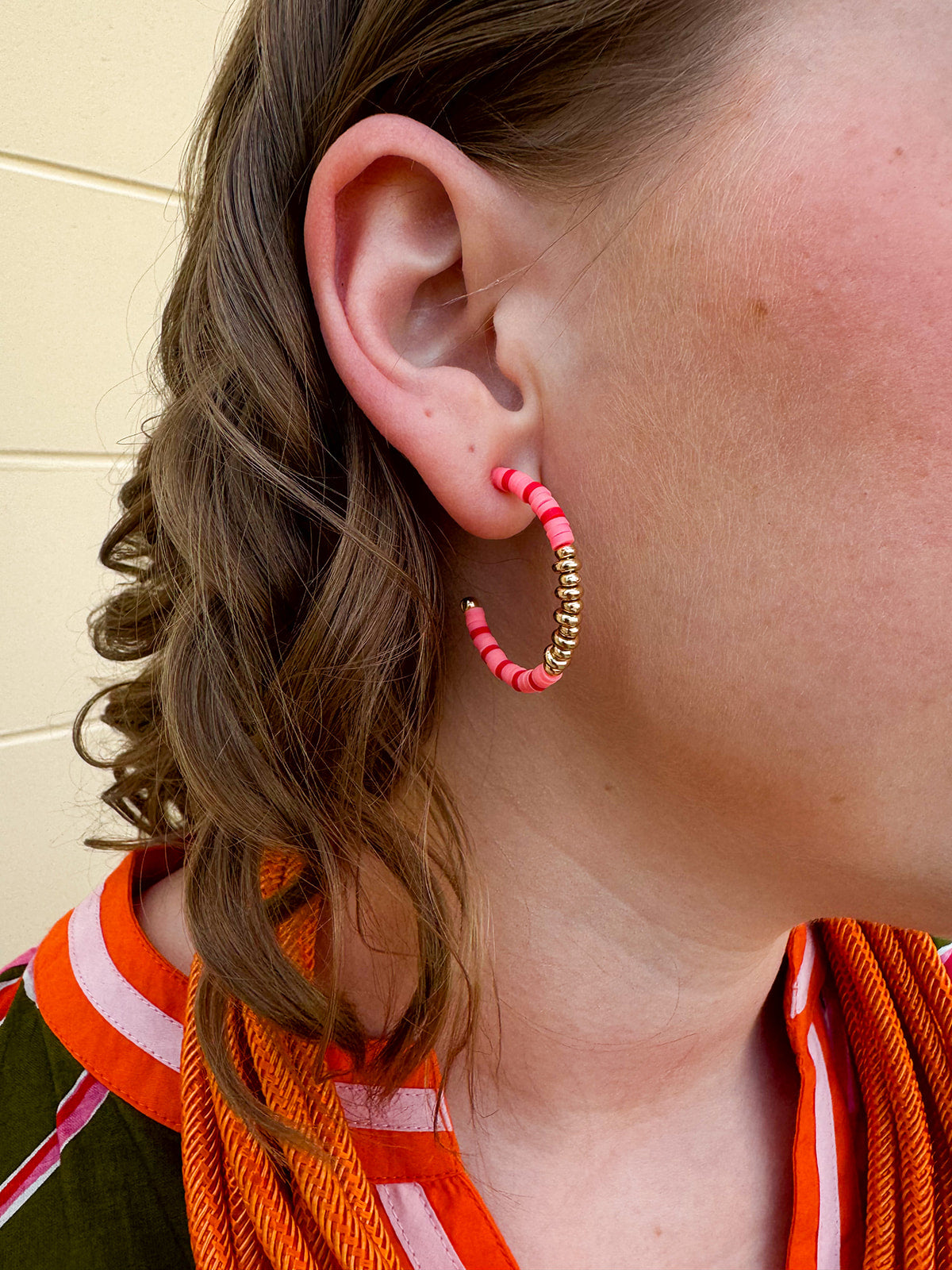 These stylish hoop earrings add a touch of sophistication to any look. Crafted with lead and nickel-compliant metals, these earrings are safe for everyday wear. The unique heishi beading gives them a timeless, fashionable appearance!