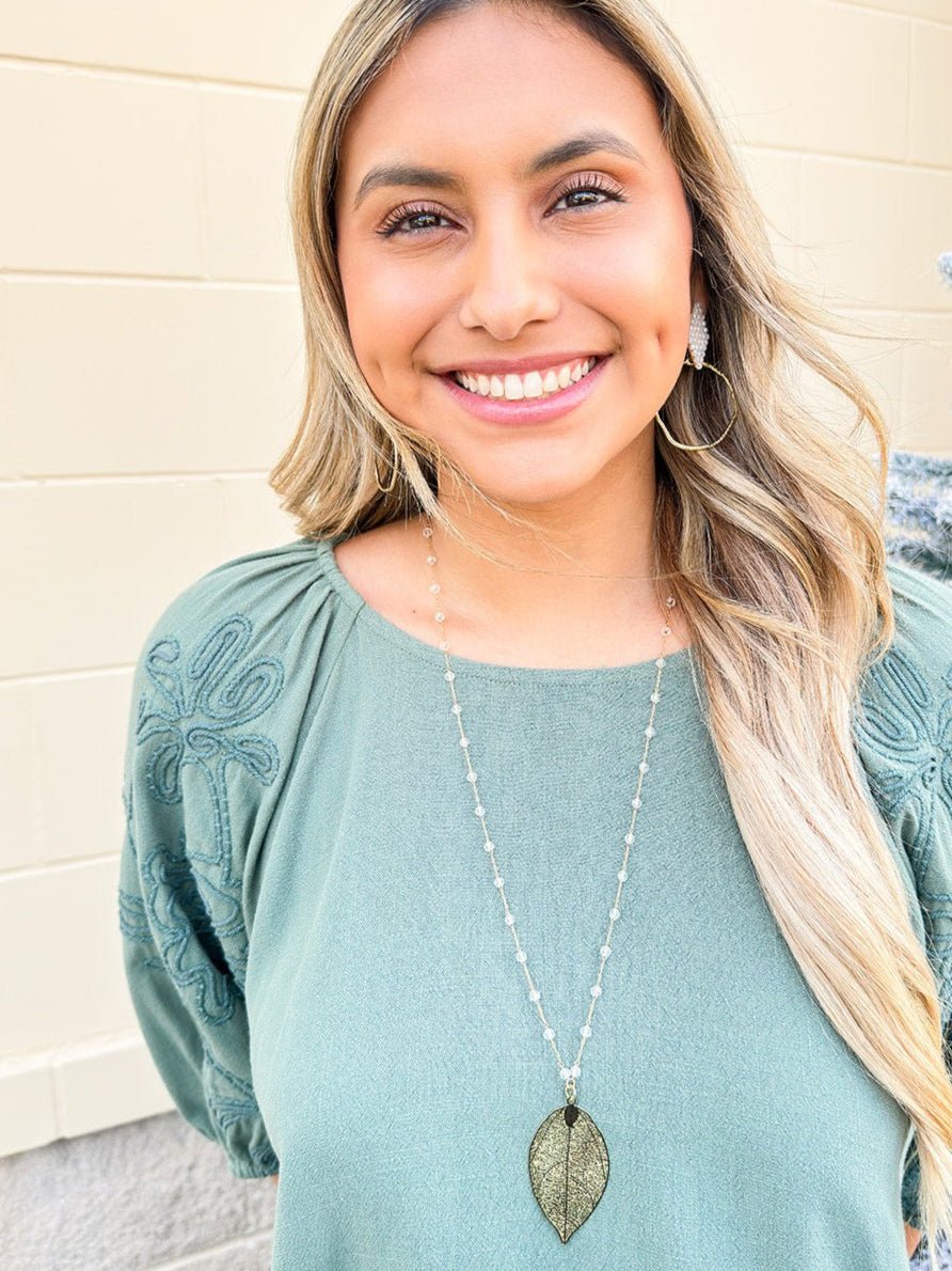 Introducing our one-of-a-kind Glass Crystal Leaf Beaded Chain Pendant Necklace - perfect for those who like to add a touch of whimsy to their style! With a length of 28" (plus extender) and a stunning filigree leaf pendant measuring 1.23"x2.12", this necklace is a must-have for any fashion-forward individual.