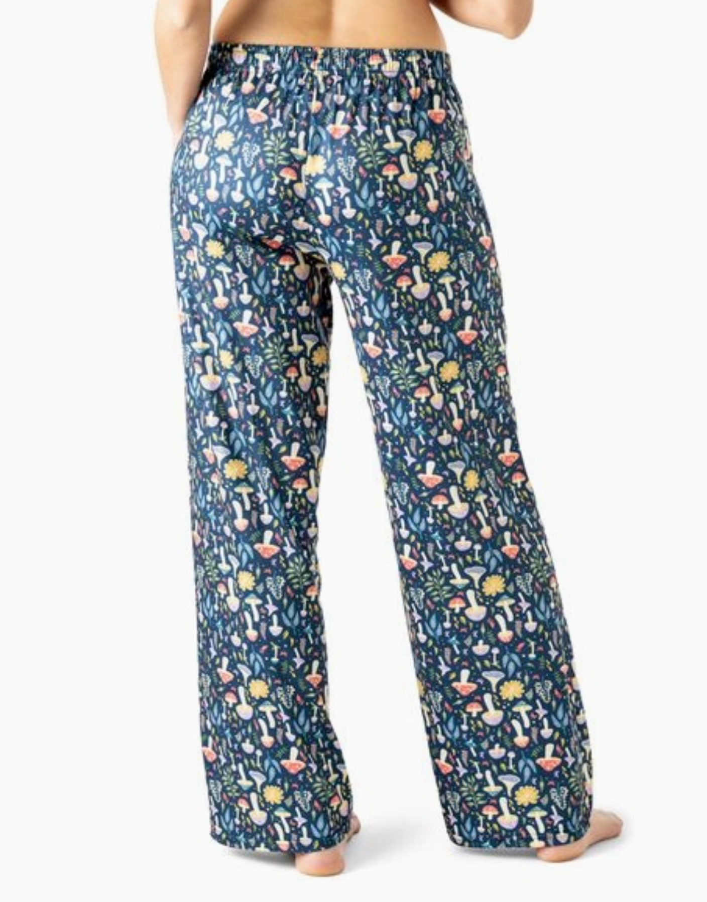 Need pajama pants that are as whimsical as they are comfortable? The Midnight Meadow Wide Leg Pajama Pants are made for cozy nights and dreamy mornings. Designed in a deep navy background sprinkled with colorful, painterly mushrooms, this playful print adds a little magic to your downtime. Crafted from ultra-soft, stretchy fabric, these pants feature a relaxed wide-leg silhouette that flows effortlessly, paired with a comfy elastic waistband and soft drawstring tie for the perfect adjustable fit. Whether you’re curling up for a movie night or pairing them with the matching top for a coordinated set, these pants are sure to become your favorite go-to lounge essential.