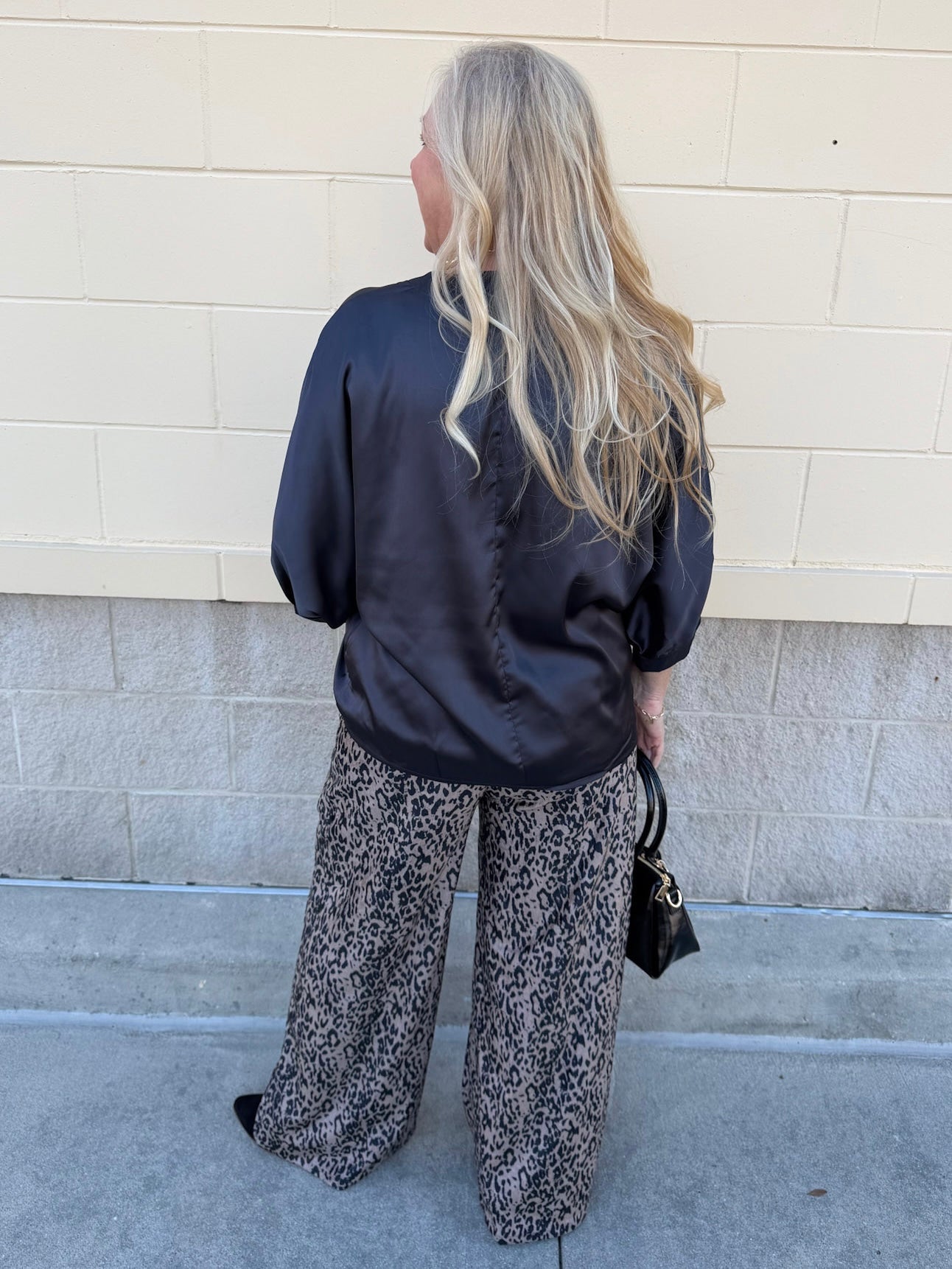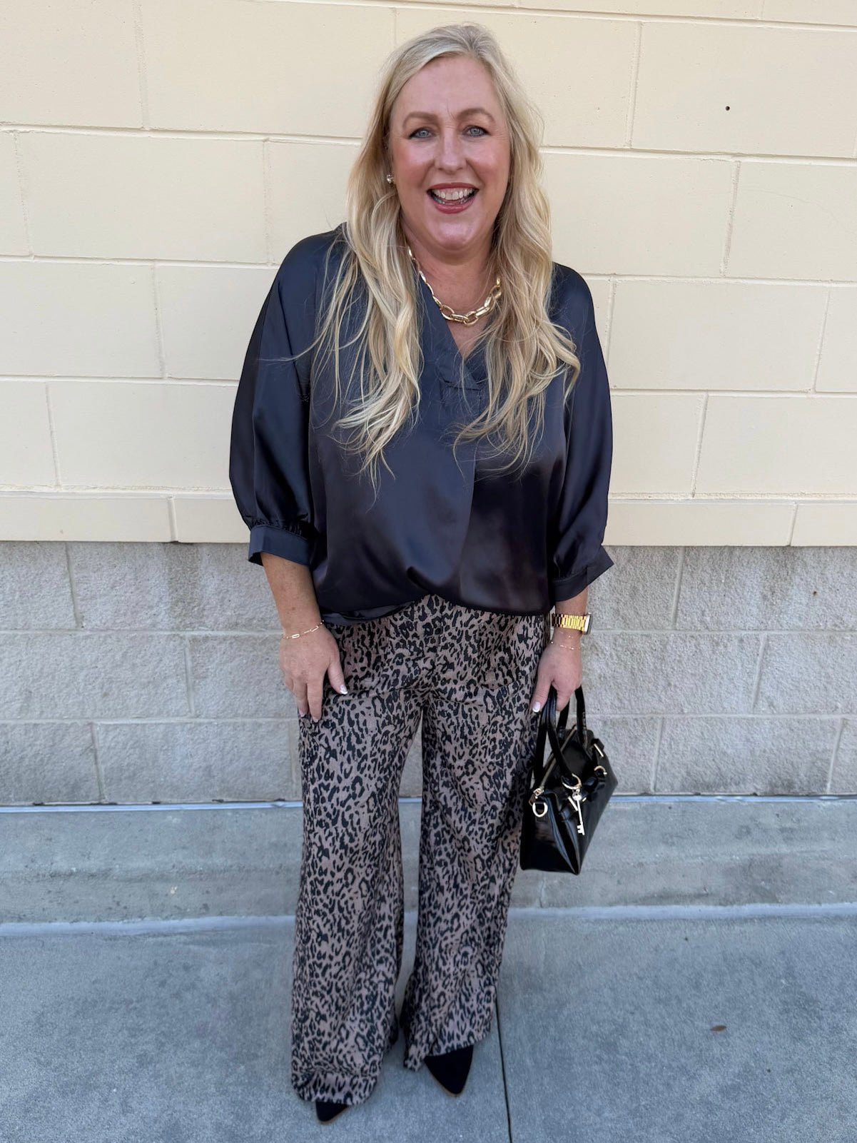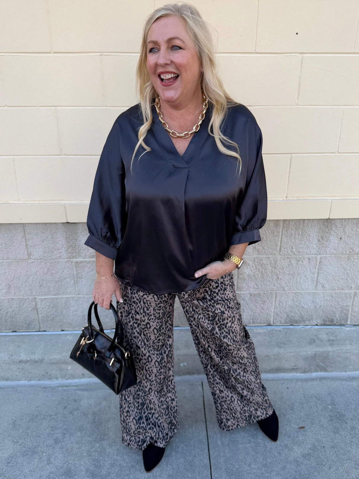 Effortlessly elegant and endlessly versatile, The Midnight Moment Blouse brings soft sophistication to your wardrobe with a sleek, modern twist. Crafted from a silky, lightweight fabric that drapes beautifully, this V-neck blouse offers an elevated yet easy-to-wear look. The long sleeves feature subtle cuff detailing for a polished finish, while the rich black tone adds a timeless touch that pairs seamlessly with everything in your closet.
