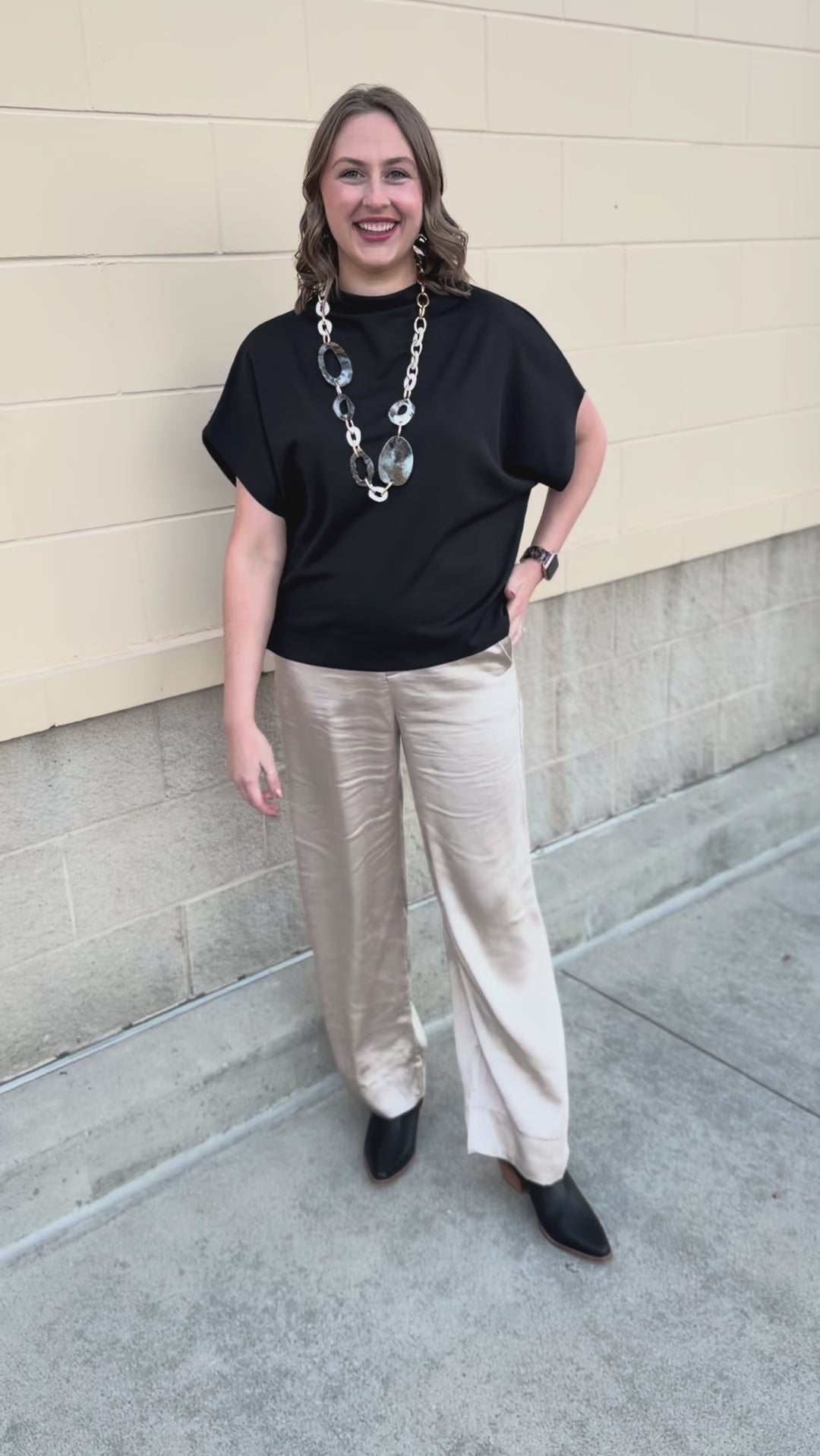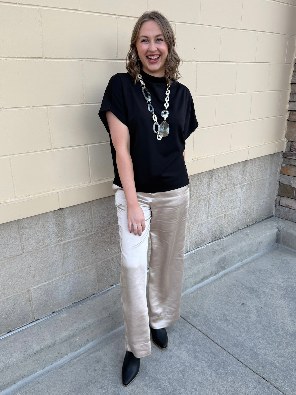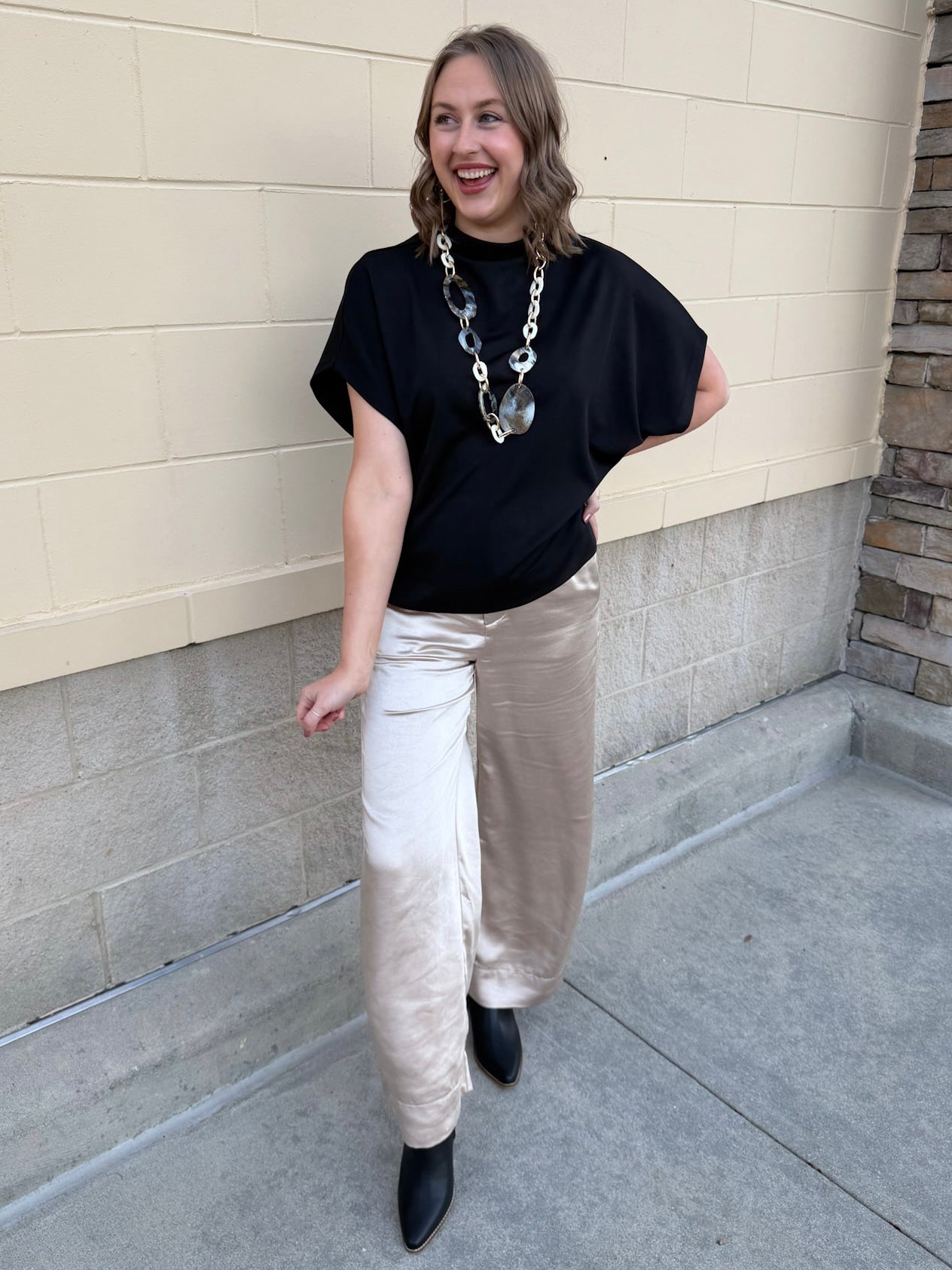 The Midnight Poise Dolman Top is modern, sleek, and effortlessly polished. Designed in a rich black woven fabric, this top features a softly draped neckline and relaxed dolman sleeves for a look that feels elevated yet easy.