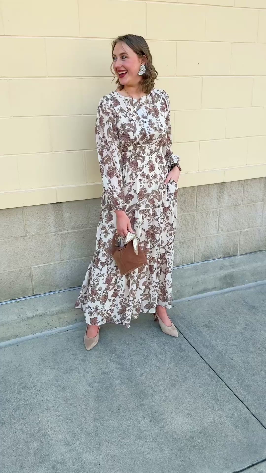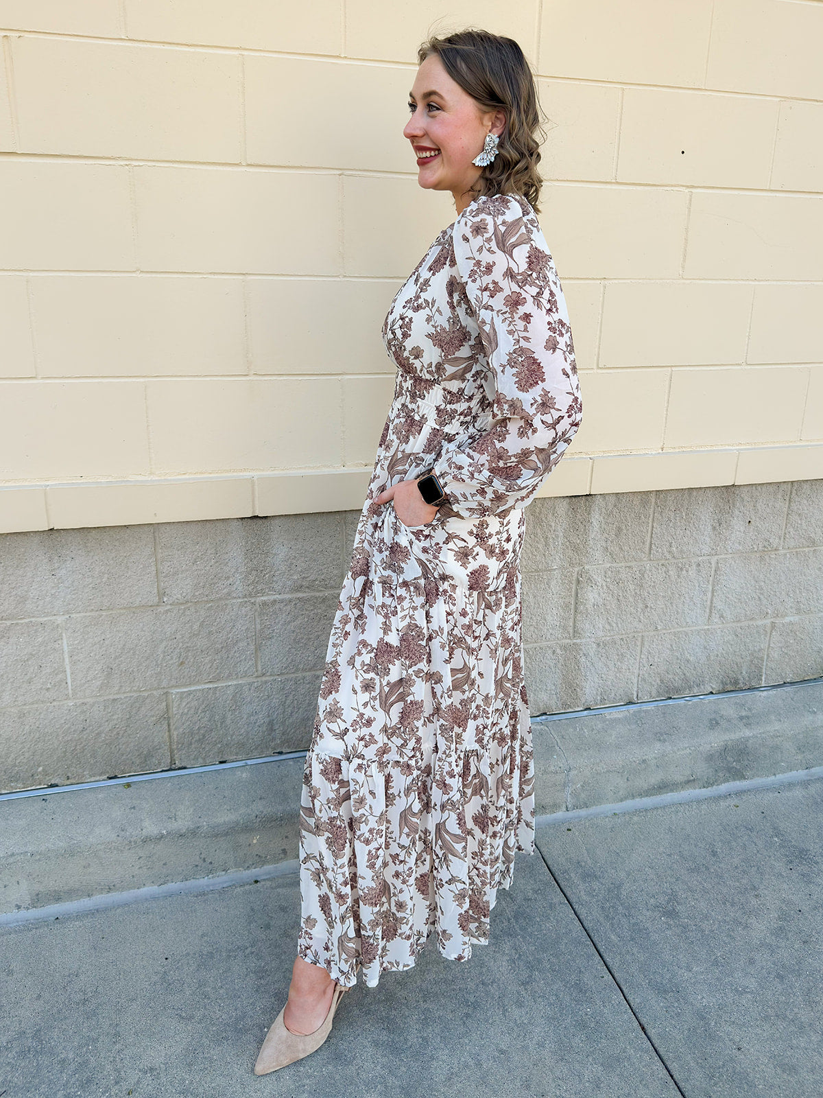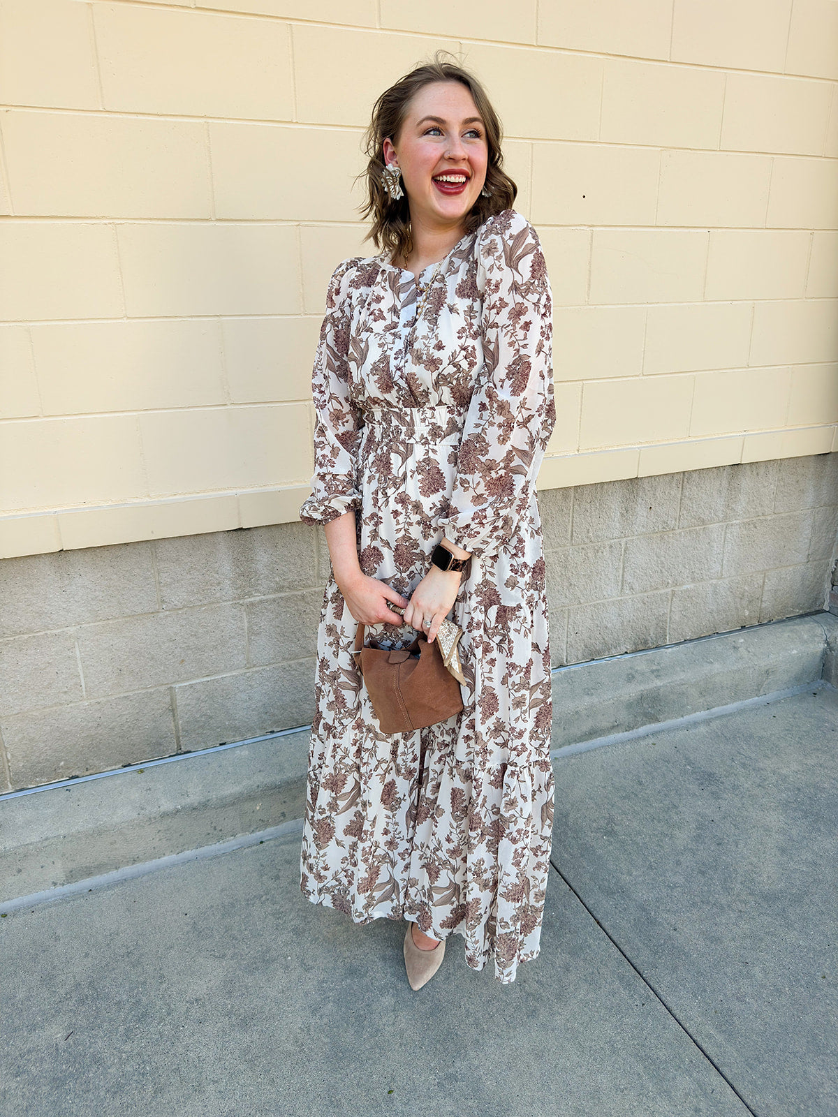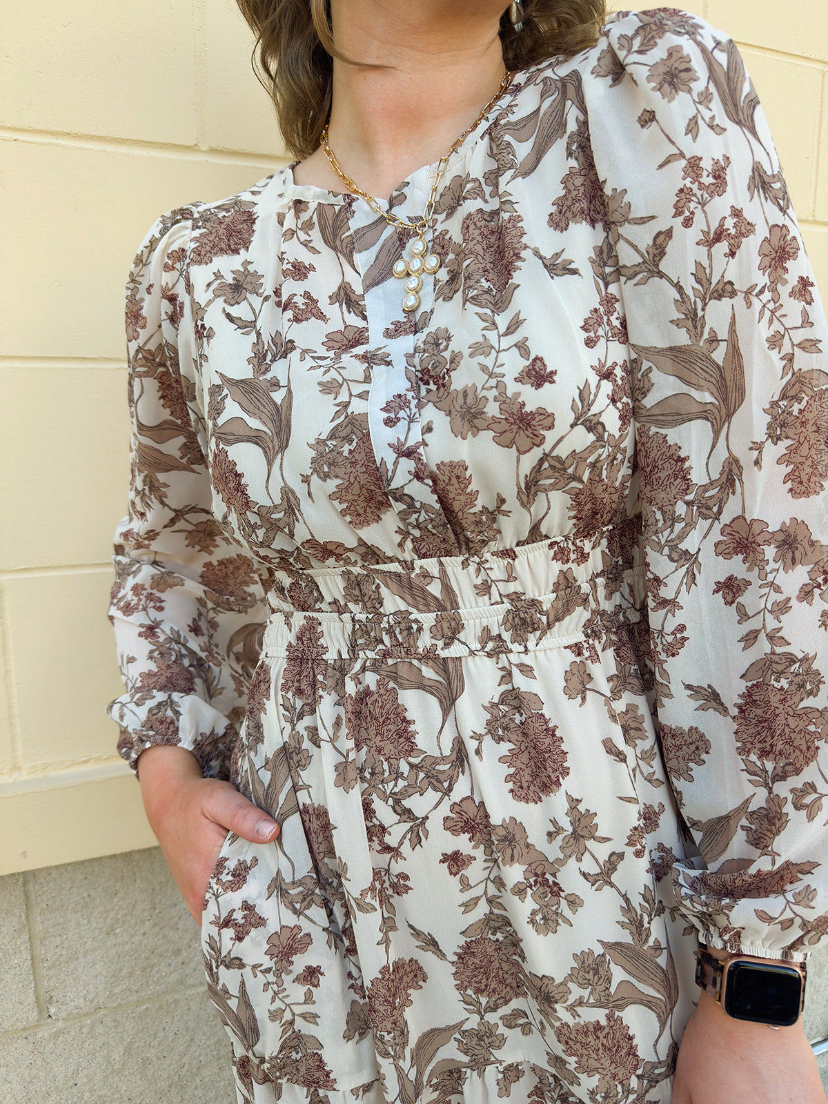 There’s something quietly captivating about the Mocha Fleur Midi Dress—a soft-spoken statement piece that feels like stepping into your own secret garden. With its rich brown and cream floral print, this dress brings warmth and elegance into perfect harmony. The 3/4 length sleeves add a touch of polish, while the slight V-neck flatters without trying too hard. A softly cinched waist defines your silhouette just enough, making it ideal for everything from fall brunch dates to golden hour get-togethers. Whether paired with boots and a felt hat or dressed up with gold accessories and sleek heels, this dress moves effortlessly through the seasons.