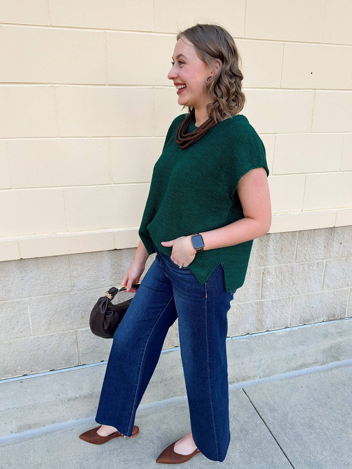 Effortless, cozy, and undeniably chic — The Moss Grove Sweater is the perfect blend of relaxed comfort and refined fall style. Designed in a soft moss green hue, this oversized short-sleeve sweater brings a fresh, earthy tone to your seasonal wardrobe. The crew neckline and drop shoulder silhouette create a laid-back fit that drapes beautifully, while the lightweight knit keeps it versatile for layering from early fall through the cooler months.
