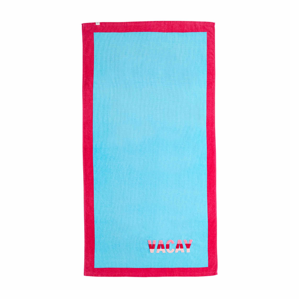Experience the ultimate luxury with our Mudpie Vacay Blue Beach Towel. Made from 100% cotton bouclé, this towel offers both softness and durability. Its embroidered sentiment and contrasting border add a touch of sophistication, making it perfect for both beach and poolside use. Plus, its easy care instructions of machine washing and tumble drying make this towel a must-have for any vacation or staycation!