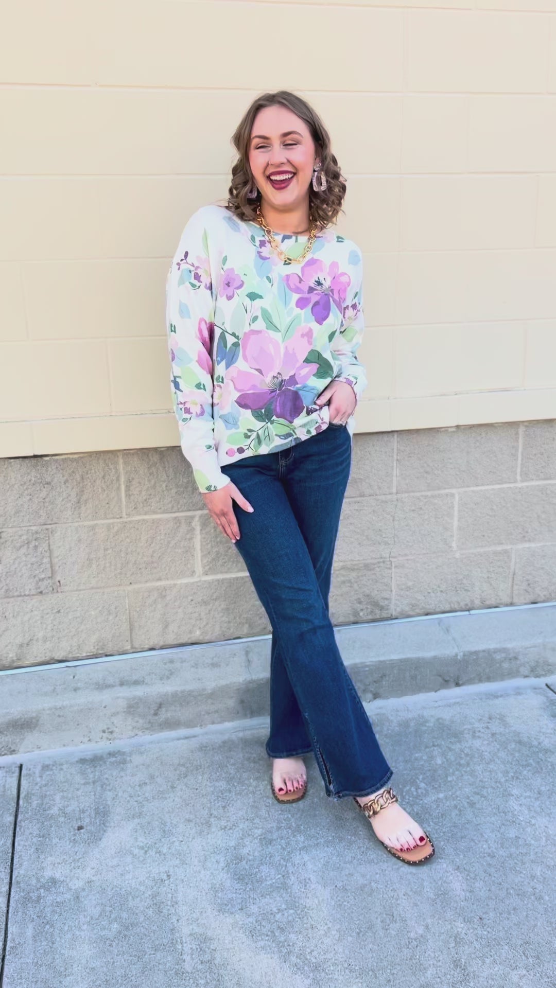 Soft, romantic, and full of charm, the Muted Meadow Graphic Sweater feels like wearable art for your everyday wardrobe. Designed with a cozy, ultra-soft feel and an ivory base, this sweater is covered in a delicate all-over floral pattern in beautifully muted tones. The print gives it the personality of a graphic piece while the fabric keeps it comfortable and easy to wear from morning to night.