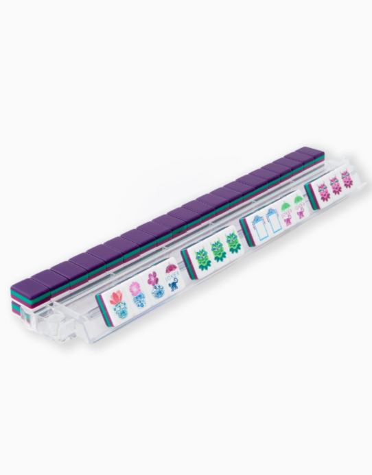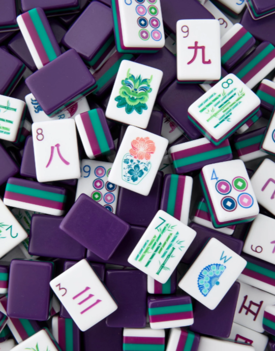 160 acrylic Mahjong tiles in jewel-toned purple, green, and berry
