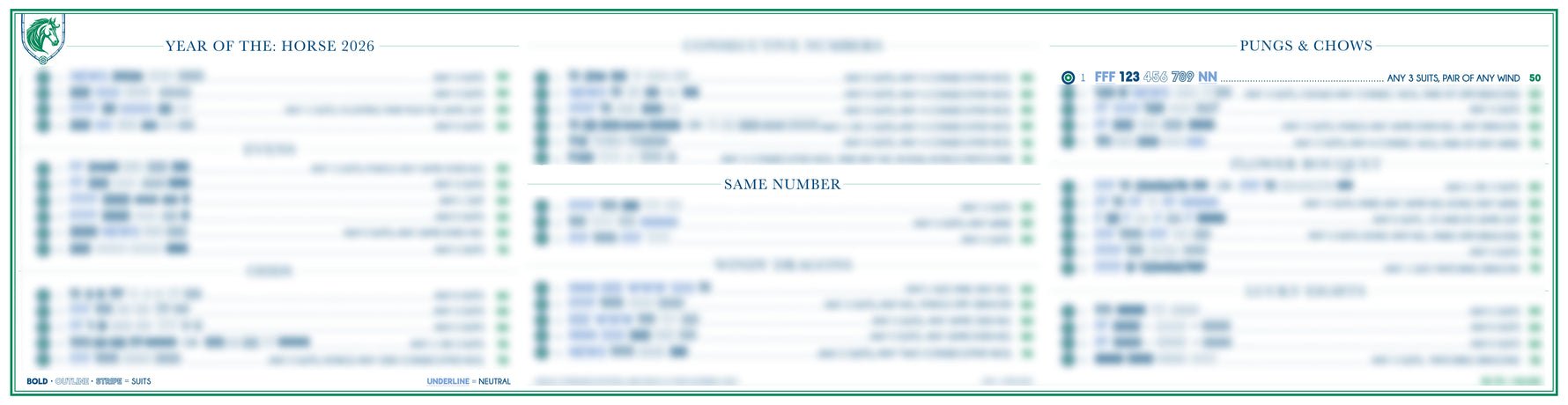 Styling tip: Keep this card tucked neatly into your Mahjong tile box or displayed alongside your game setup for easy reference during play.