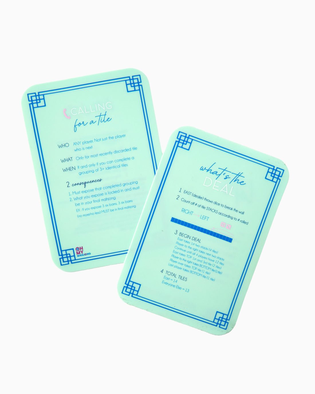 Each shuffler features printed rules and tips on all four sides, offering helpful guidance with a stylish twist. Lightweight yet durable, they’re incredibly easy to use, store, and transport. With their bright Mint green finish, these shufflers add a pop of personality to every table and pair beautifully with a wide range of Mahjong mats and tile sets. Oh My Mahjong items are FINAL SALE.