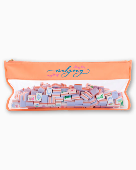 Elevate your Mahjong game nights with the Peach Script Mahjong Zippered Bag, where soft sophistication meets effortless chic. In a lovely peach hue, this bag features delicate light blue and purple embroidery in a graceful script-style design, perfectly complementing the elegant Luminaire Tiles. Designed for both beauty and functionality, it offers a roomy interior, secure zipper closure, and clear bottom section—making it easy to store, transport, and display your tiles with flair. While it pairs beautifully with Luminaire Tiles, feel free to mix, match, and make it uniquely yours!