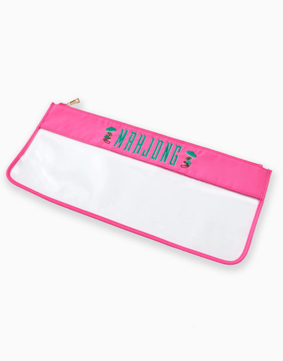Ready to add a pop of personality to your Mahjong nights? The Pink Monkey Zippered Bag turns game night into a playful, stylish affair. Featuring bold neon bubblegum pink and rich teal embroidery, this bag is framed by two cheerful monkeys that bring a fun, cheeky touch to your collection. Beyond its eye-catching design, it’s highly functional: a spacious interior, secure zipper closure, and clear bottom section let you store and display your Mahjong tiles in style. Perfect for gifting or treating yourself, it’s the ultimate accessory for players who love to combine flair with practicality.