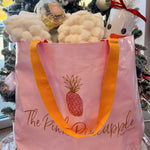 Gift the bracelets or fuzzy socks as stocking stuffers and keep the laminate tote as your new everyday carry-all—it’s cute, durable, and totally Pink Pineapple.