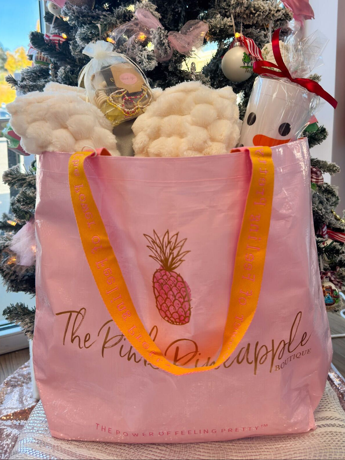 Need a little extra sparkle to kick off Pink Friday? Our Pink Friday Swag Bag is your must-have holiday bonus—free with any $150+ Pink Friday purchase. With extremely limited quantities and a “one per customer” limit, these festive bundles will go fast. Each bag features a brand-new Pink Pineapple branded laminate tote filled with cozy, gift-ready surprises you’ll love using all season long. Your swag bag price will automatically zero out at checkout to apply your VIP Swag Bag free with a qualifying $300 subtotal