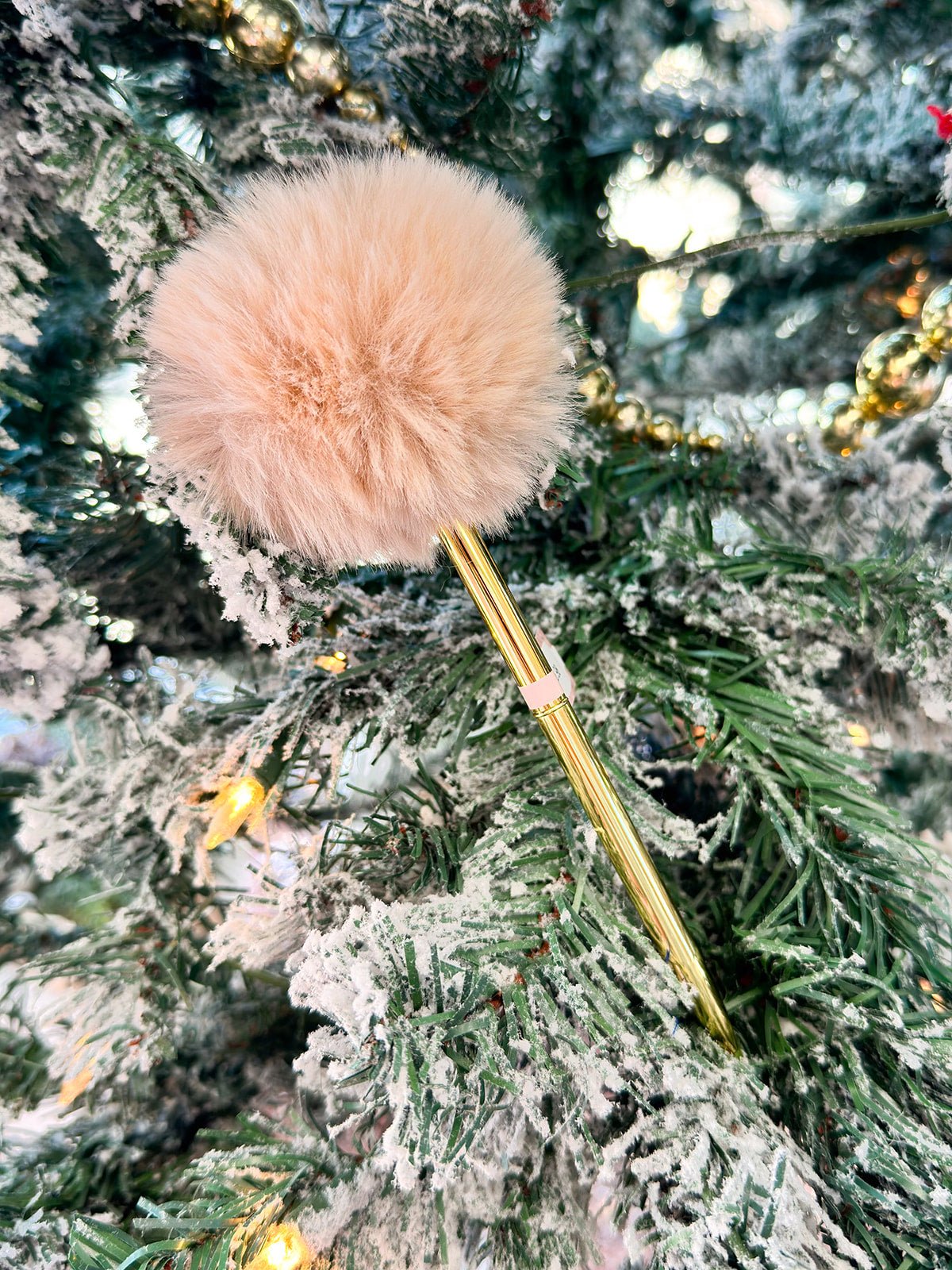 Make your desk a little prettier with our Plush Pom Ballpoint Pen — the perfect mix of charm and sophistication. Featuring a sleek goldtone barrel topped with an ultra-soft pom, this pen turns even your to-do list into a moment of joy. The smooth black ink glides effortlessly across the page, while the playful pom adds a touch of fun flair to your workspace. Available in pink, gray, black, and tan, it’s the chic desk accessory you didn’t know you needed.