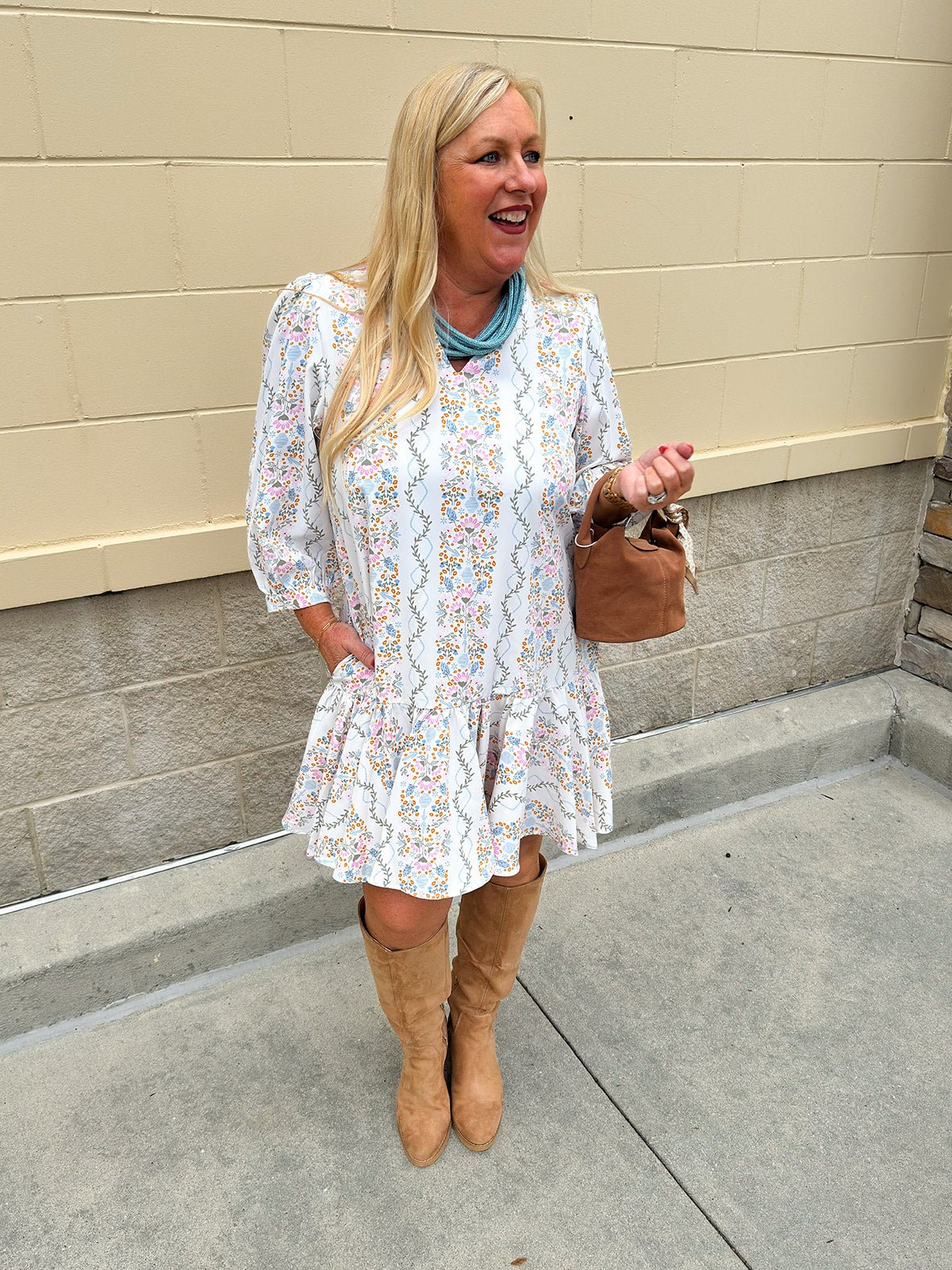 At 24 inches long, it sits just right—making it the perfect finishing touch for both casual and elevated looks. The dusty blue tone is fresh, on-trend, and easy to pair with both neutrals and brights. A ball-and-eye closure keeps it secure while maintaining a clean silhouette. Trust us: once it’s on, you won’t want to take it off.