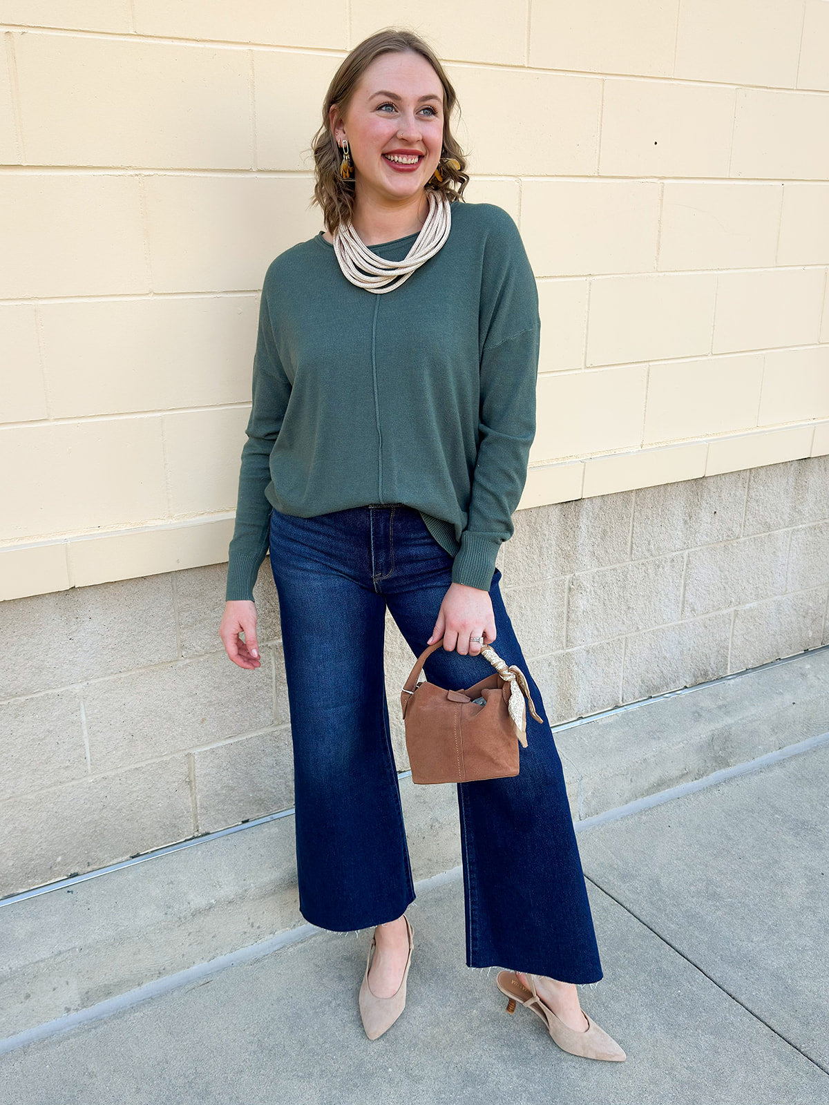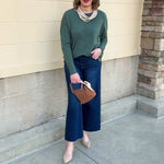 Soft, sophisticated, and timeless—the Sage Stitch and Story Knit Sweater is a wardrobe essential with a story to tell. Crafted in a gentle sage hue, this super soft knit features a unique seam running down the front that adds subtle texture and modern charm to a classic round neck silhouette. Perfect for layering or wearing on its own, it effortlessly blends cozy comfort with polished style, making it an ideal piece for both casual days and refined looks.