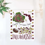 Bring gameday spirit to your kitchen with the Saturday Cheers Tea Towel! Featuring the same playful design as our popular cocktail napkins—hand-drawn Doak Campbell Stadium with “Tallahassee, FL” and tailgate tents—this tea towel adds a fun, spirited touch to your home while celebrating Seminole pride. Crafted from durable, absorbent fabric, it’s perfect for drying dishes, lining a snack tray, or simply adding a festive flair to your kitchen décor.