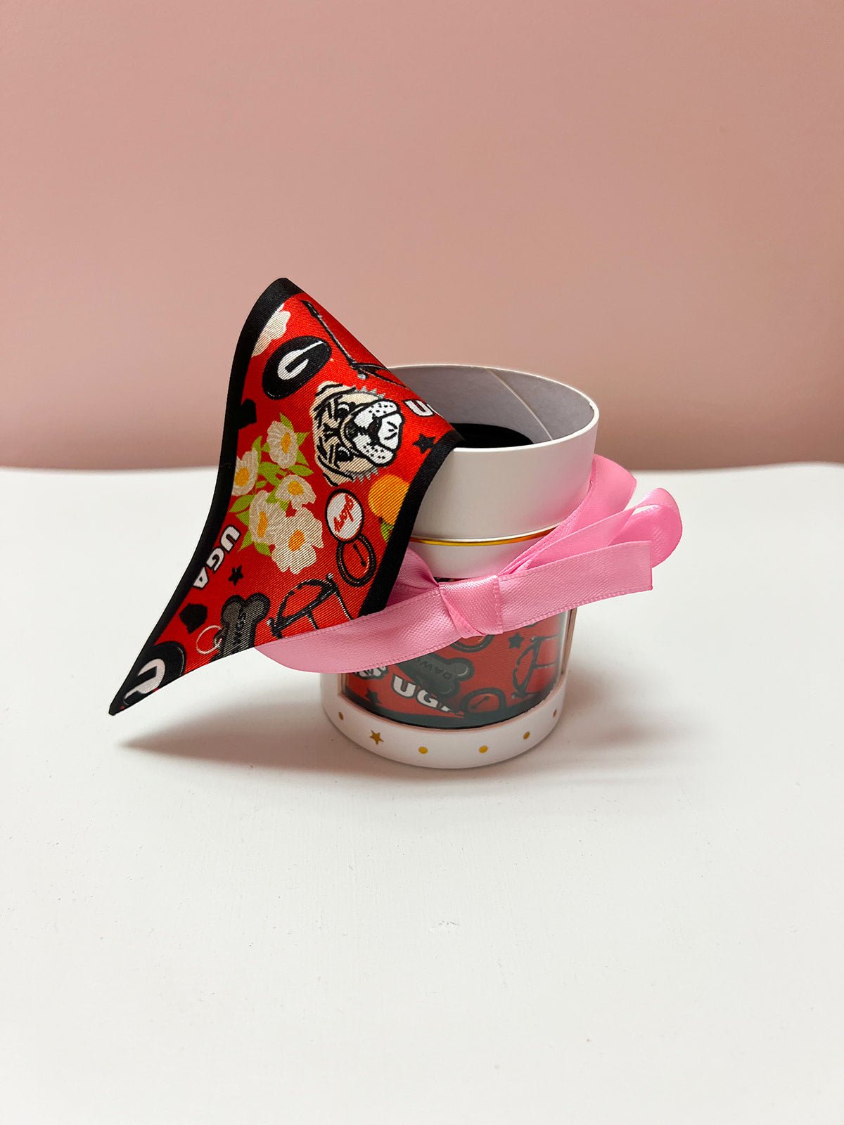 From Sanford Stadium to Sunday brunch, the [SATURDAY SILKS] Georgia Gameday Skinny Scarf is your go-to accessory for showing off your Bulldog pride with style. Made from luxe 100% silk twill, this 2in x 36in scarf is double-sided with a bold Bulldog floral print on one side and a striking red chain twist on the other. Wear it tied in your hair, around your wrist, or wrapped around your favorite bag—it’s the perfect finishing touch for any spirited look. Designed in Houston, Texas, and packaged in a windowed tube tied with a bow, this officially licensed piece is part of our Gameday Silks Collection.