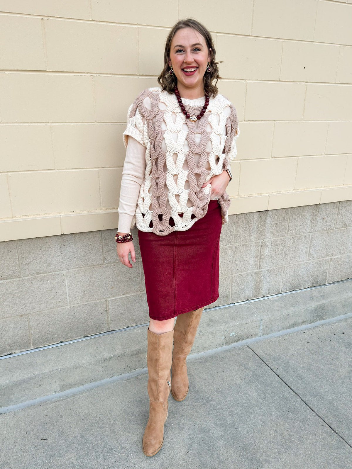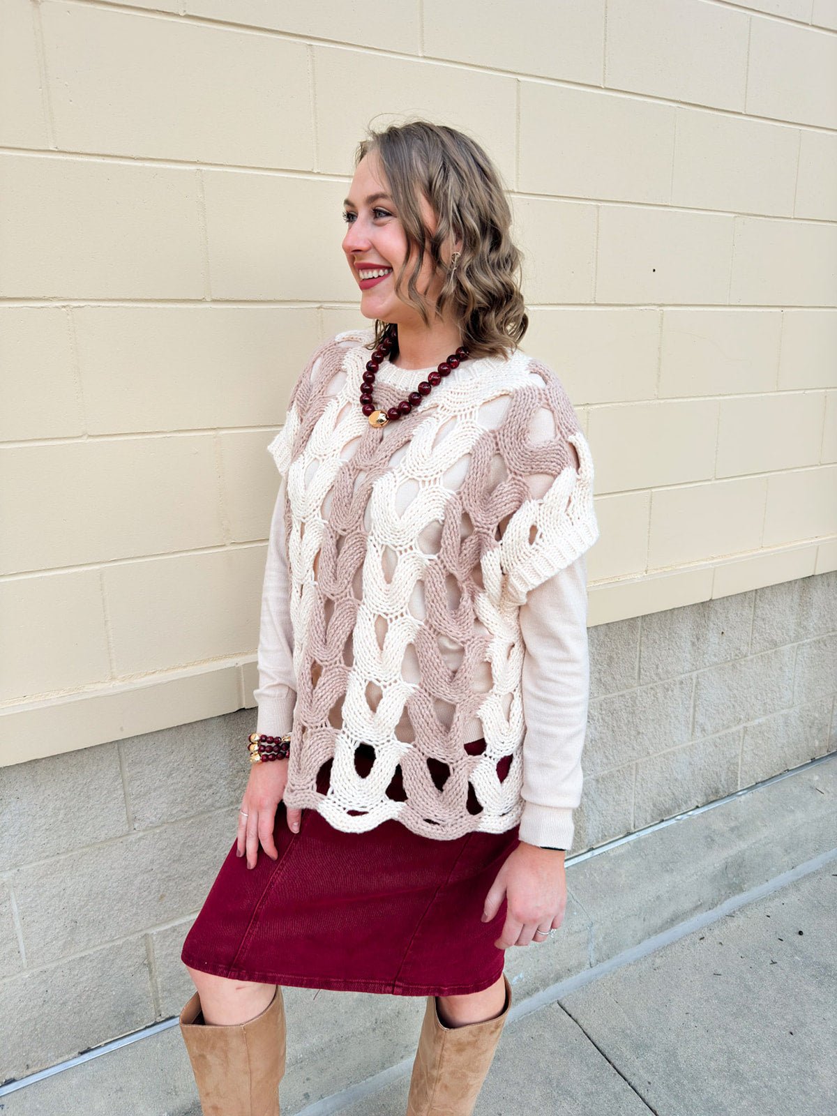 Looking for that perfect fall layer with a touch of cozy charm? The Savannah Color Block Sweater Top brings warmth, texture, and effortless style to your cool-weather wardrobe. Designed with a large open-knit weave, it’s the ideal lightweight layer for crisp mornings and cozy afternoons. The ribbed neckline and short sleeve cuffs add structure and shape, while the color-block pattern gives it a modern, seasonal flair. Layer it over a fitted tank on mild days or pair it with a long-sleeve tee when the temperatures drop. With its relaxed silhouette and soft, breathable feel, Savannah makes transitioning into fall as chic as it is comfortable.
