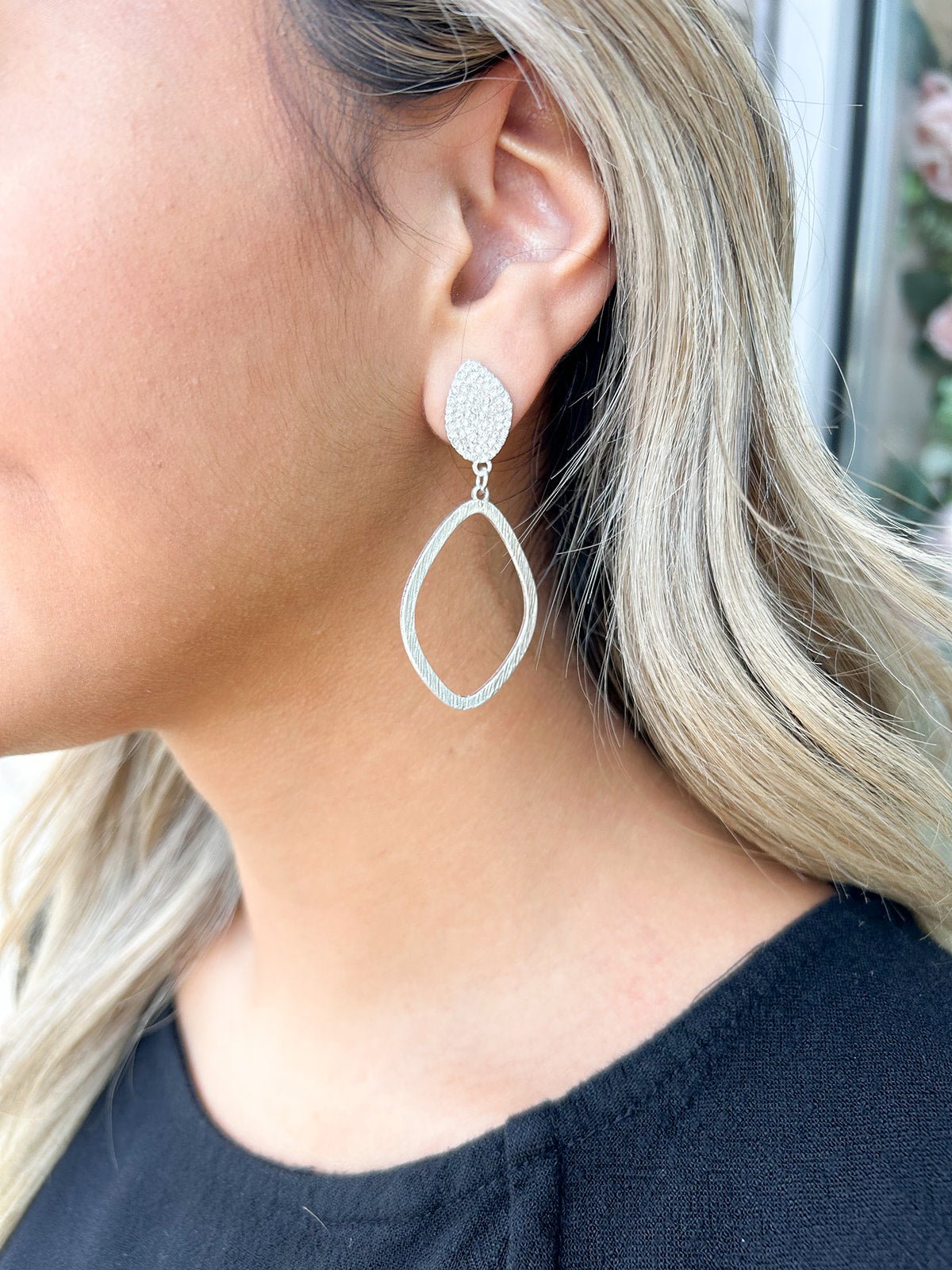 Silver Rhinestone Pave with Open Round Drop 2" Earring