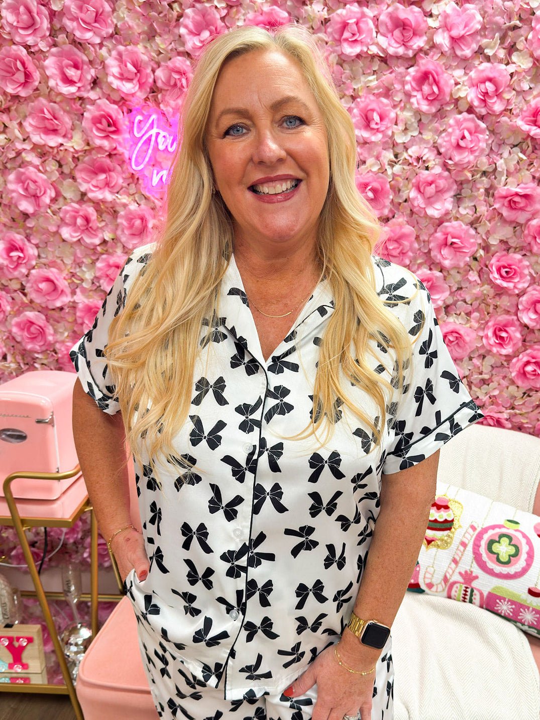 Looking for sleepwear that pampers both your skin and hair while keeping you cozy and chic? The So Lovely Satin Bow Pajama Top is designed for true beauty sleep, crafted from silky satin that’s gentle on skin and hair. These adorable matching separates help minimize dryness, frizz, and knots, so you wake up feeling refreshed and ready for the day. Available in three luxe prints, this top is perfect for gifting or treating yourself to a touch of everyday indulgence. Pair with the So Lovely Satin Bow Pajama Pants for a complete, coordinated set that combines comfort and style.