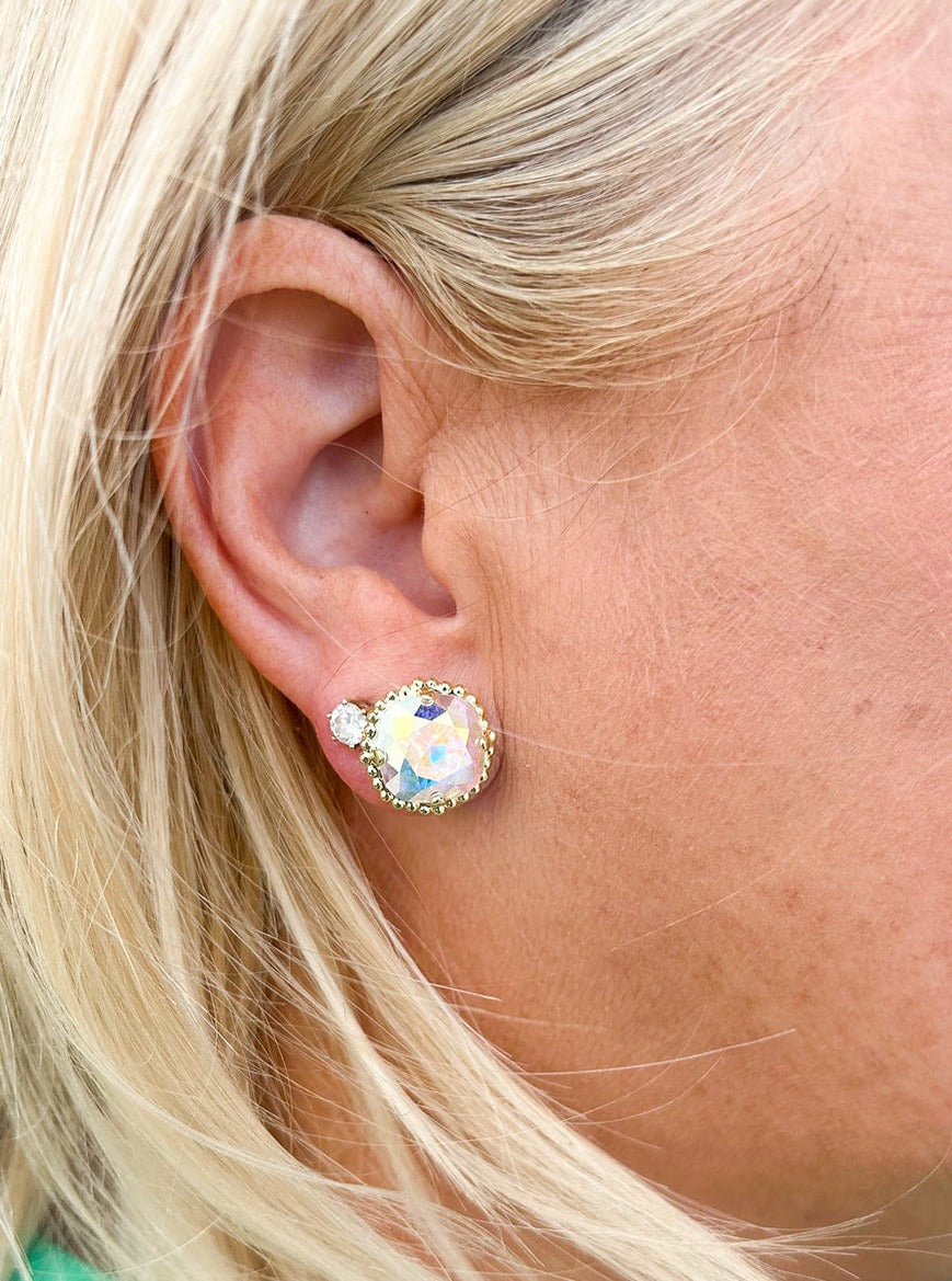 Sorrelli Cushion-Cut Solitaire Stud Earrings- Crystal Aurora Borealis