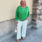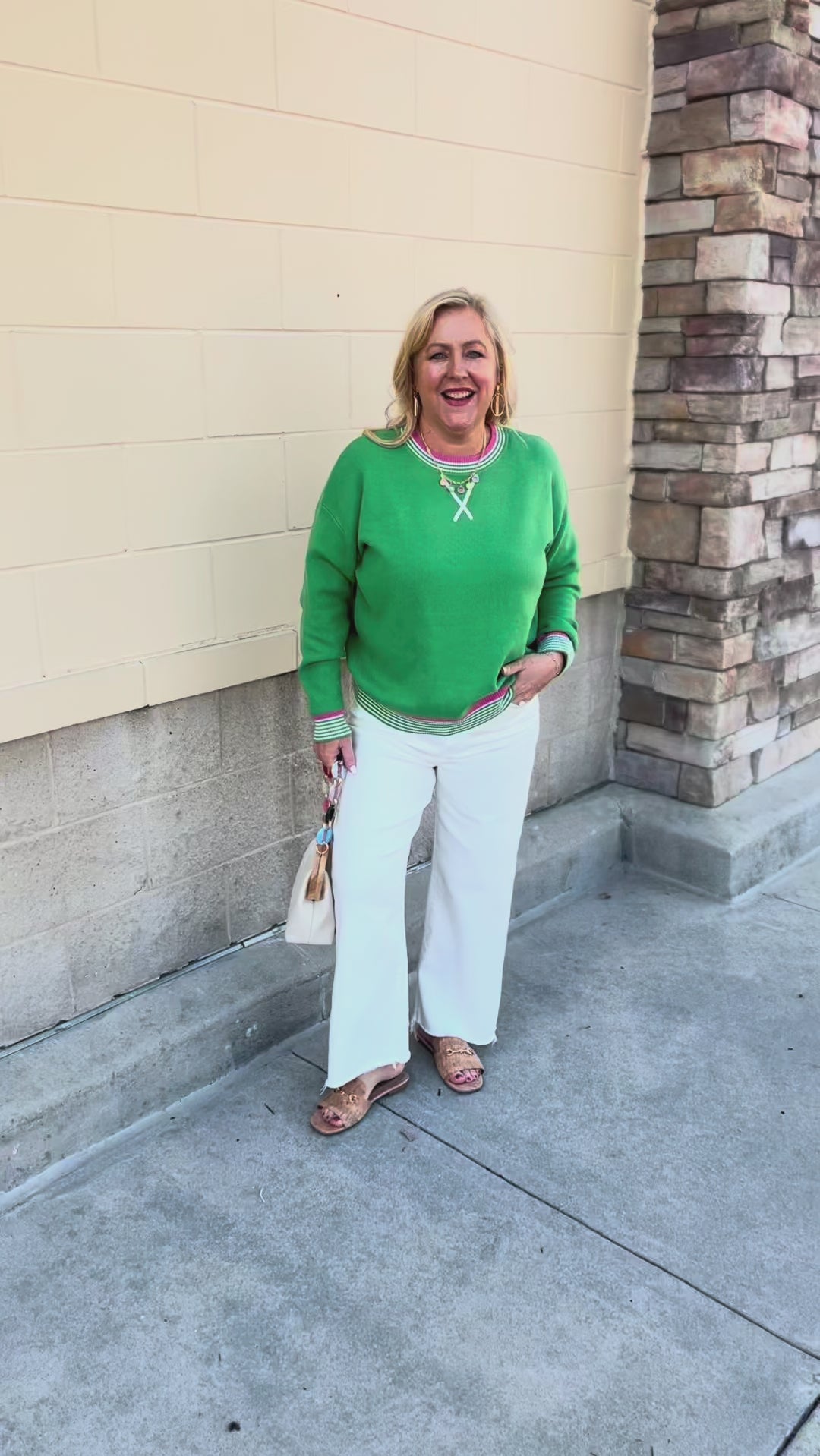 Fresh, feminine, and effortlessly easy to style, the Springtime Charm Long Sleeve Top is a beautiful piece for welcoming the new season. Designed in a refreshing shade of green, this long sleeve top features a classic round neckline accented with delicate pink detailing for a soft, playful touch. The cheerful color combination feels perfectly suited for spring days, whether you're heading out for lunch with friends or enjoying a relaxed afternoon around town. Comfortable and versatile, this top pairs beautifully with your favorite denim or white bottoms for a bright, polished look that feels both timeless and fun.
