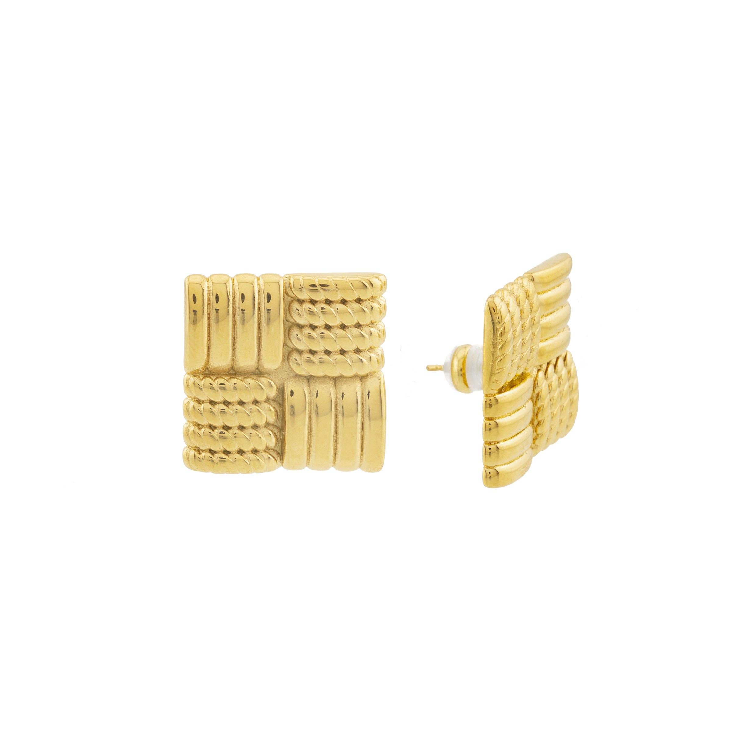 PRODUCT DETAILS * Waterproof💧💧💧 * Stainless Steel * 18K Gold * Hypoallergenic * Nickel Free * SIZE: 22mm Outer Diameter Designer Note: Get squared away with these Aspen studs. Bold and beautiful, they’re the ultimate accessory for making a statement.