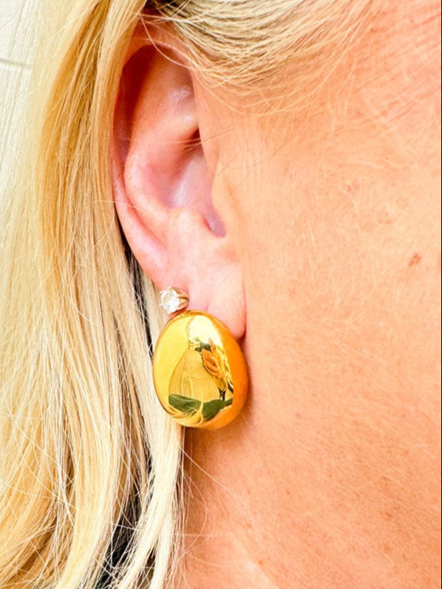 PRODUCT DETAILS * Waterproof💧💧💧 * Stainless Steel * 18K Gold * Hypoallergenic * Nickel Free * SIZE: 27mm Length Designer Note: Make a statement with these bold dome studs. They’re all about big style with minimal effort. Pair them with any outfit for instant chic.