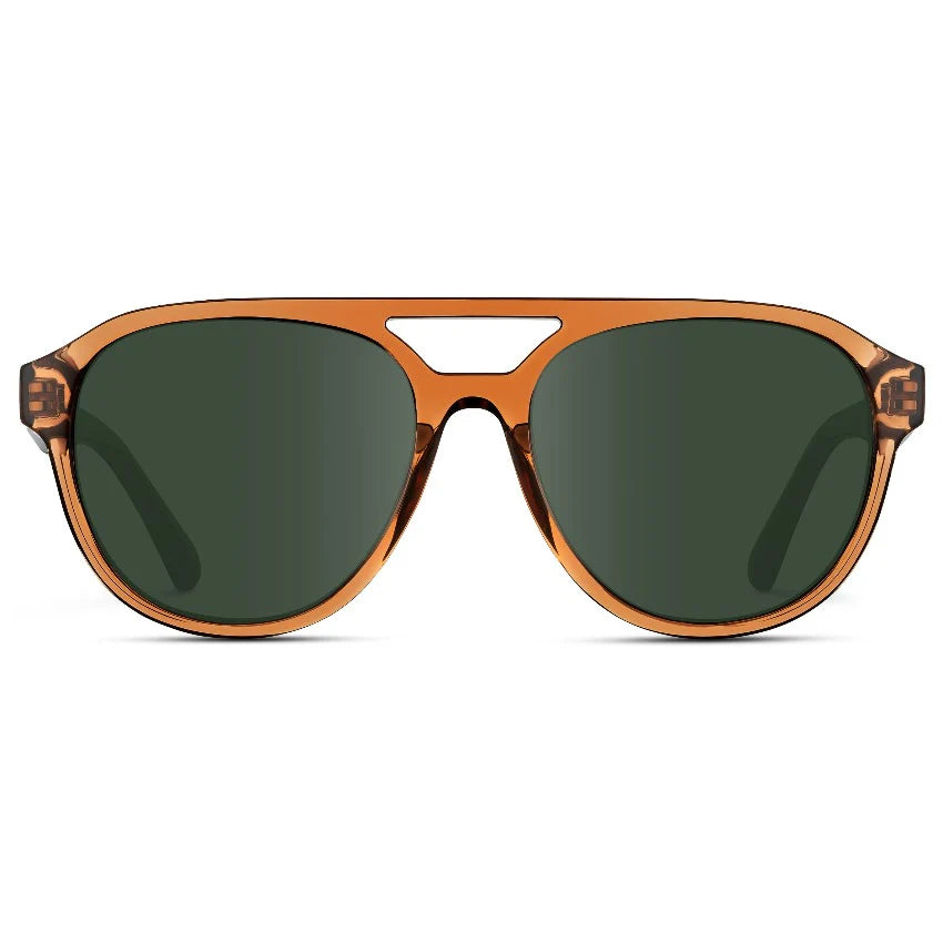With a durable acetate frame, shatter resistant lenses, and UV blocking coatings, our Sterling Crystal Copper/Green Sunglasses offer both style and protection. The five barrel stainless steel hinges and high-quality polycarbonate lens ensure long-lasting wear, while the included microfiber pouch provides convenient storage and cleaning. Ideal for medium sized heads.