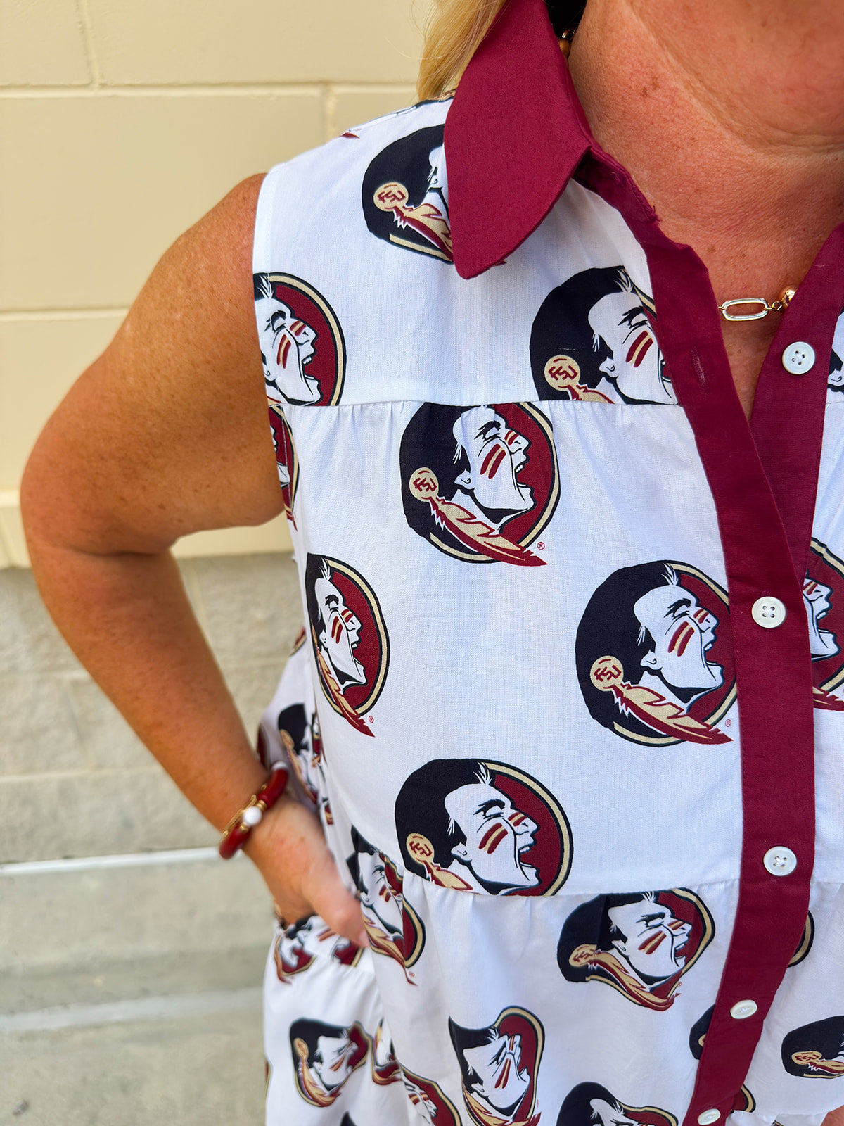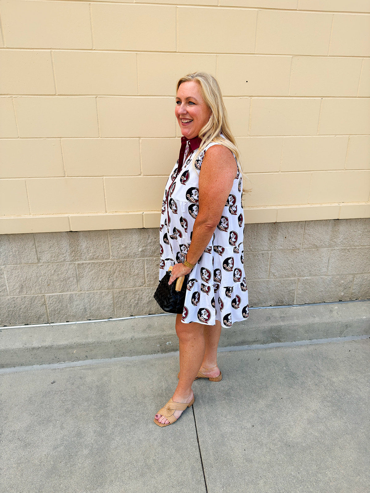 Styling Tip: Pair this dress with garnet and gold accessories, cowboy boots, or your favorite clear stadium bag to complete your Seminole game-day look.